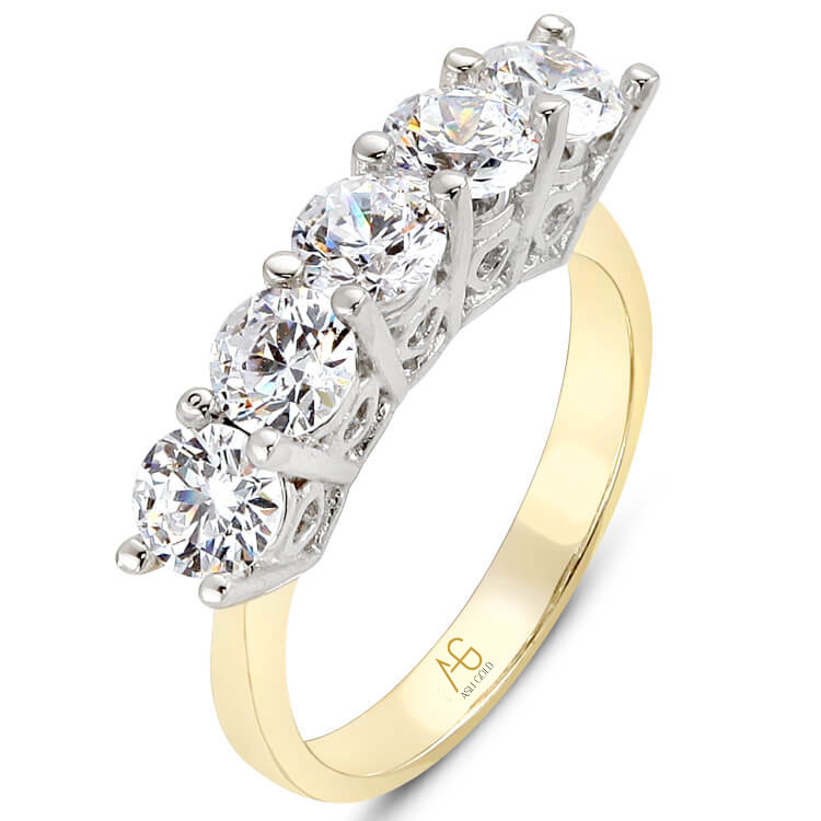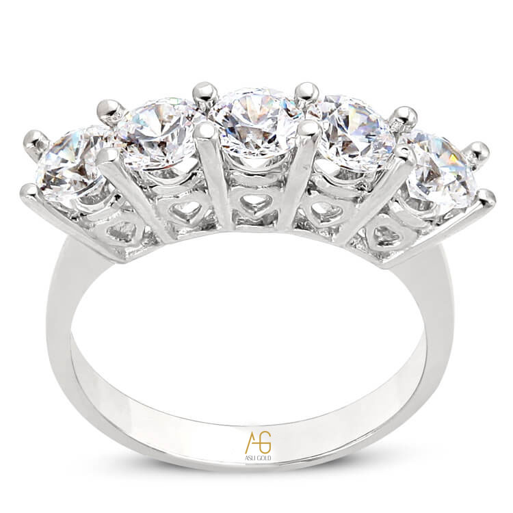 14 Ayar 3.90 gram ağırlığında zevkinize göre sarı yada beyaz altın tercihiyle satın alabileceğiniz dolgun ve büyük taşlı model zirkon taşlı 5 taş yüzük.
