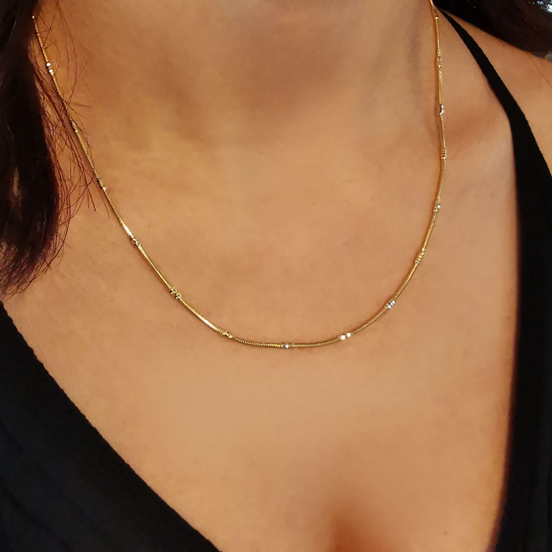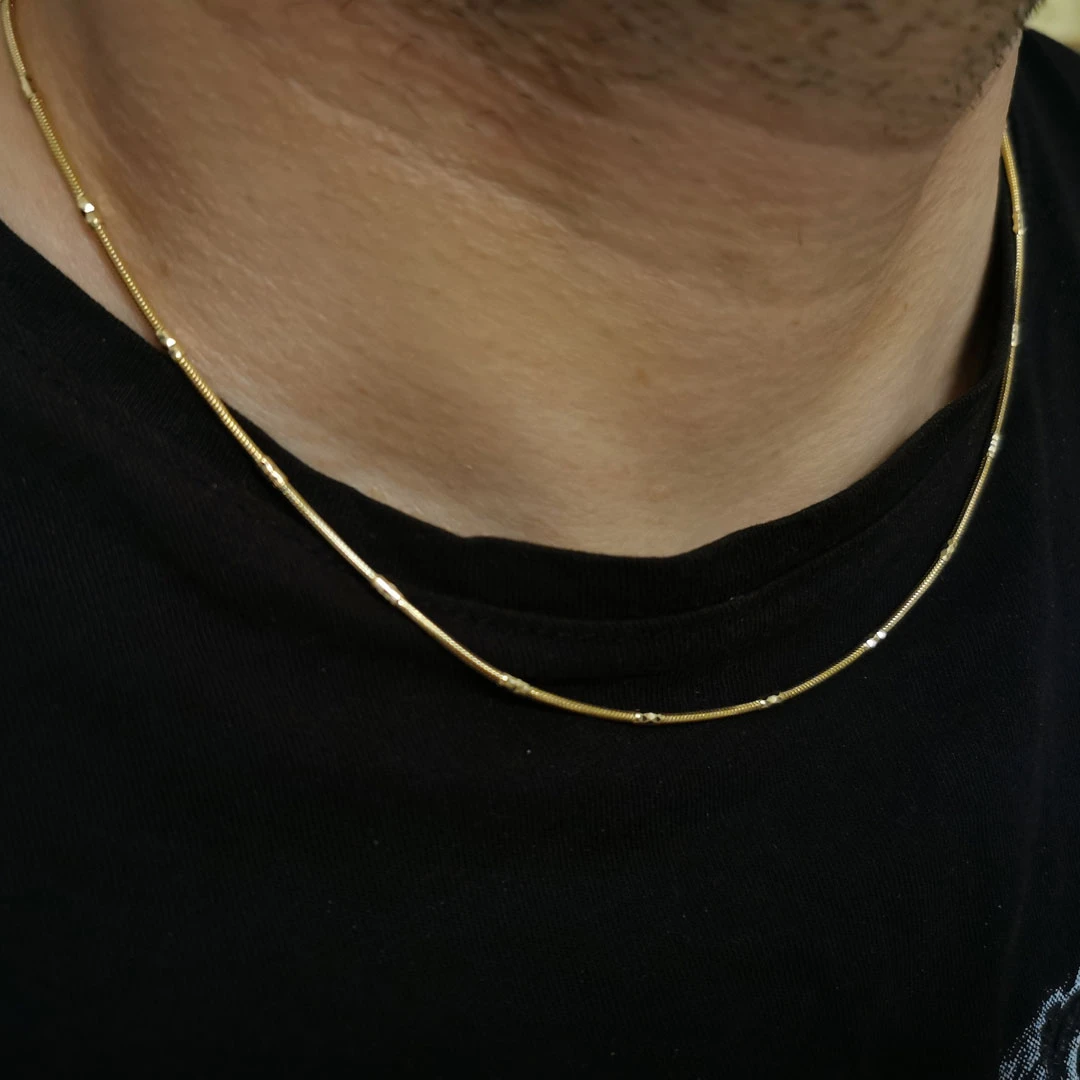 Unisex Kullanıma Uygun 50 Cm 14 Ayar Sezon Modası Blok Ara Detaylı Işıl Işıl Modern Tasarım 6.30 Gr. Ağırlığında Altın Modern Zincir Kolye.