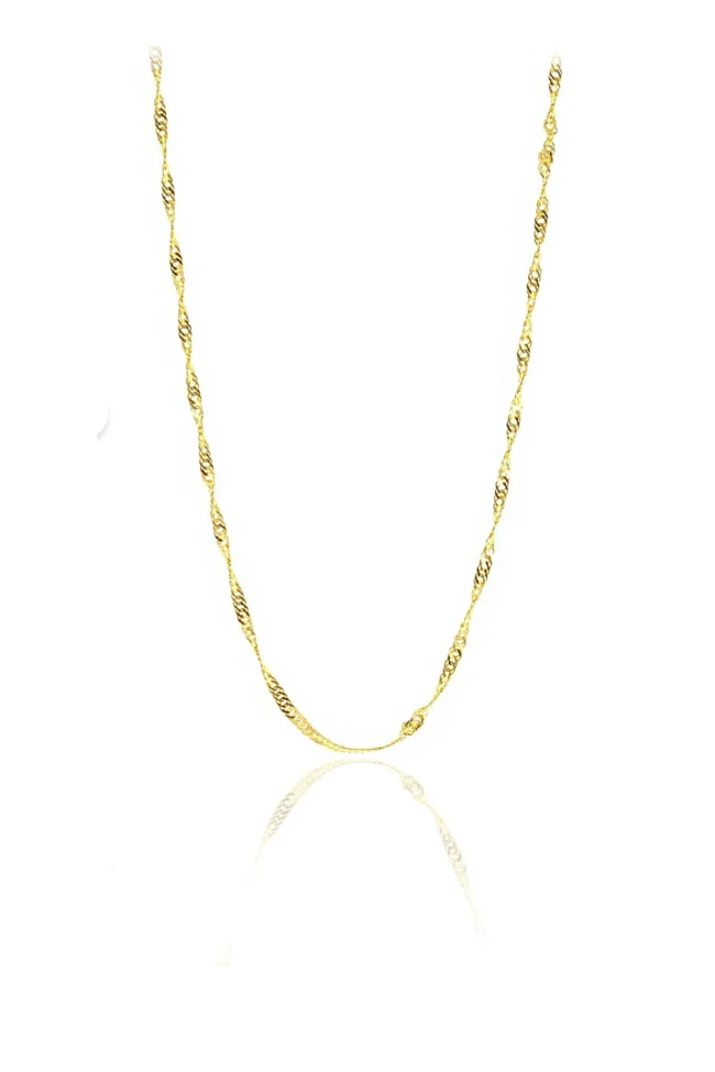 14 Ayar 2.20 gram ağırlığında 50 cm boyunda tüm sezon gömlek ve basic tişörlerinizle severek kullanacağınız, kolye uçlarınızı kombinlereyek spor giyim tarzınıza da muhteşem uyum sağlayacak 1.5 Mm ışıl ışıl altın singapur model burgu detaylı unisex zincir kolye.