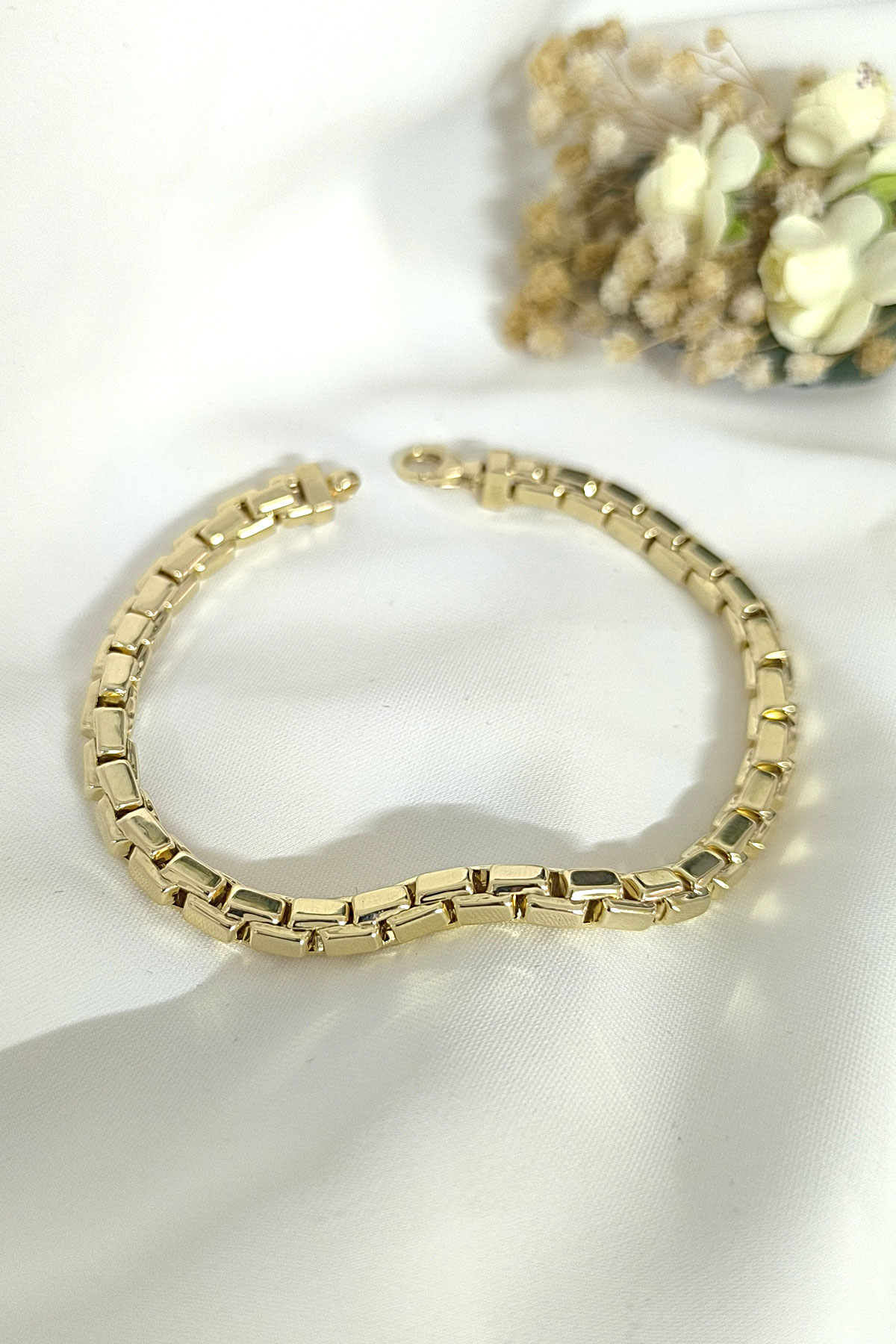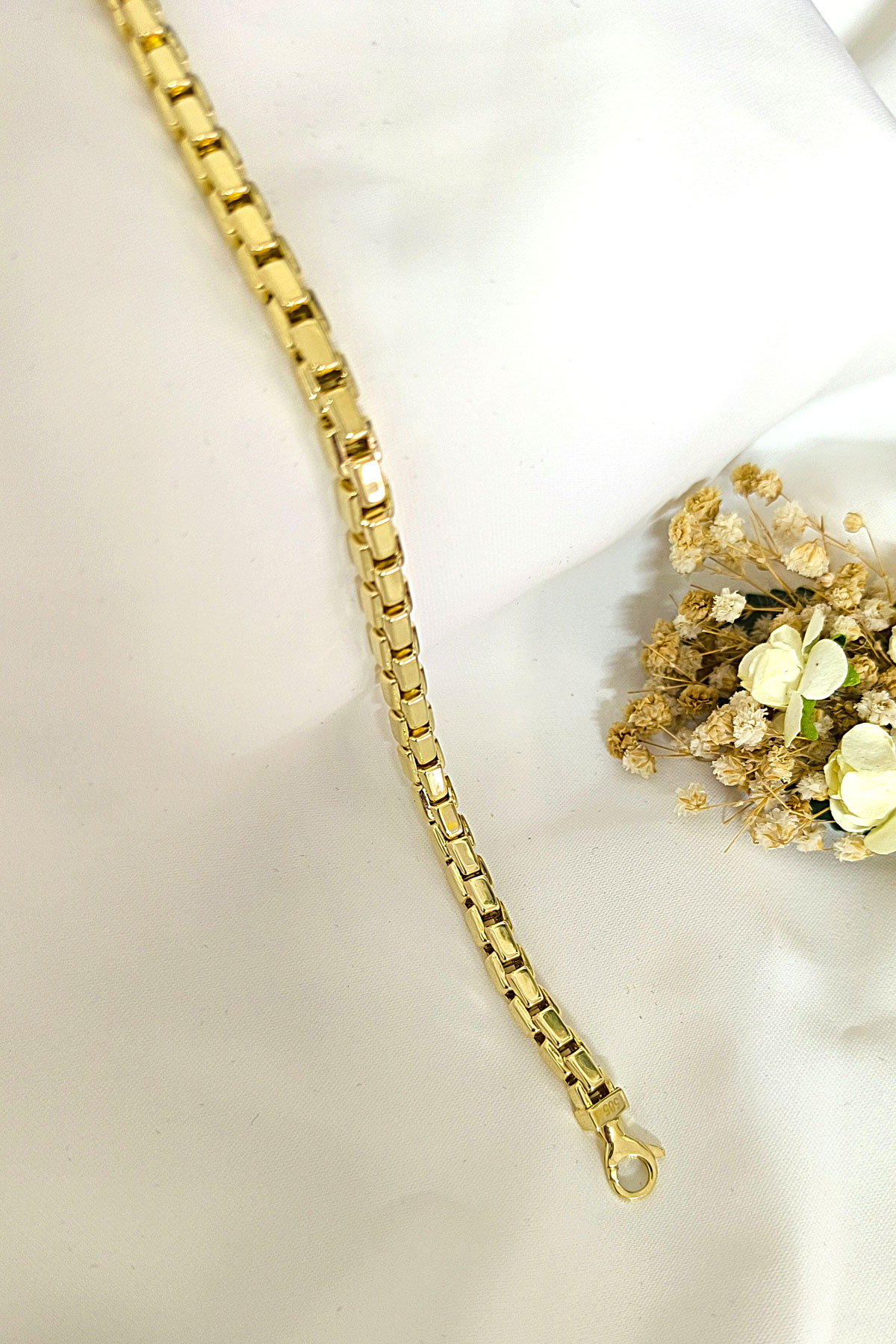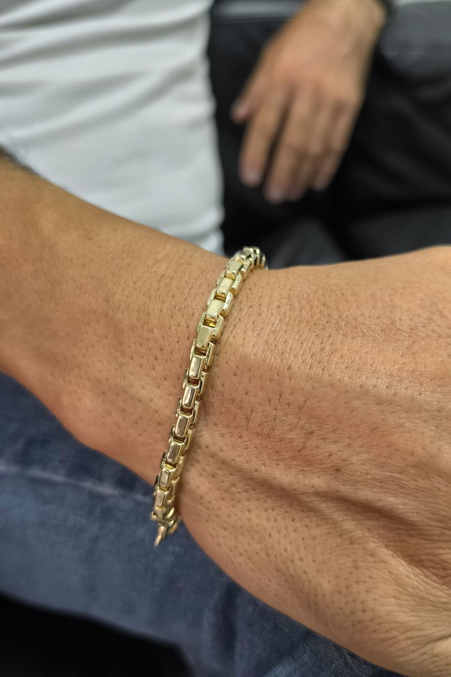 Modern Şehirli Tarz 20 Cm Boyunda 5.3 Mm Eninde Yuvarlak Küp 10.15 Gr. Ağırlığında 14 Ayar Altın Erkek Bileklik