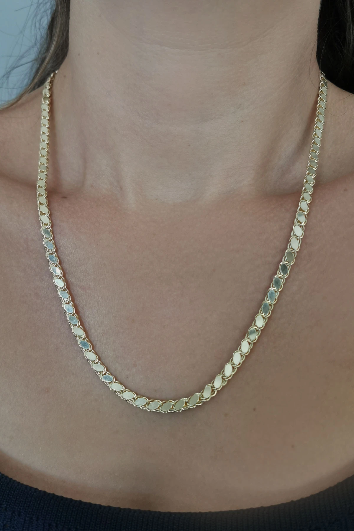 Sezonun trend modası olan 90 'lara geri dönüşün adeta sembolü haline gelen pullu altın zincir kolyeyi dilediğiniz kolye ucuyla kombine olarak ve tek başına yada farklı model kolyelerinizle bir arada kullanabilirsiniz.