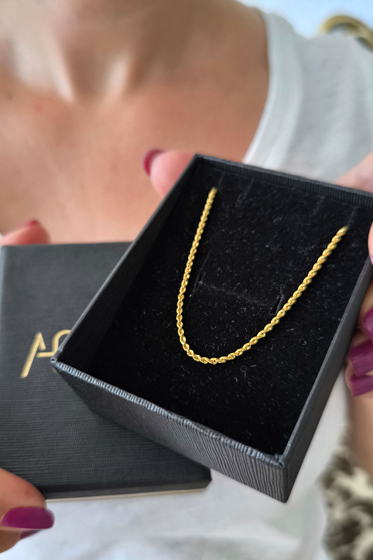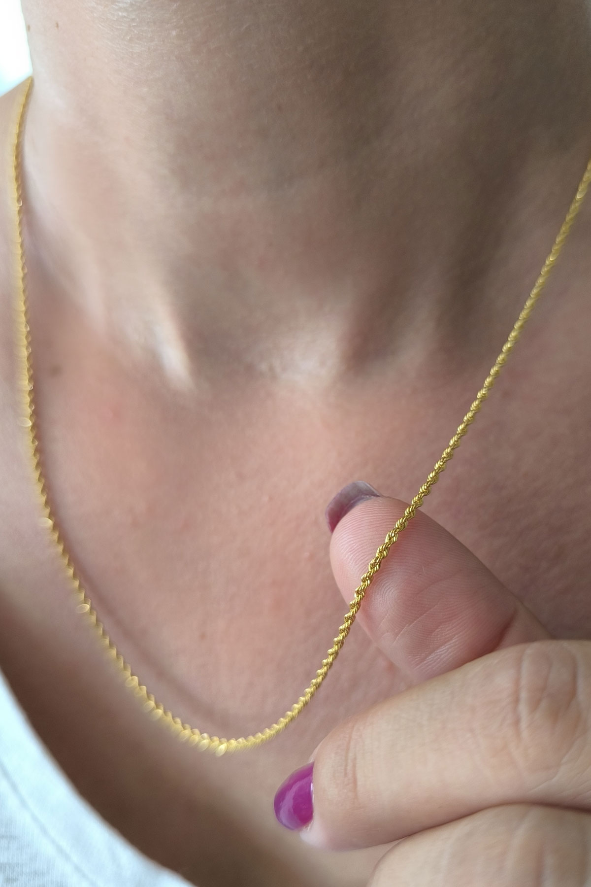 1.90 Gram ağırlığında 55 cm sezona yeniden damga vuran halat zincir modelimiz zarif ve sağlam duruşu ile tüm kolye uçlarınızla uyum sağlayacak. Günlük kullanımda severek tercih edeceksiniz.