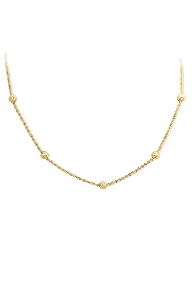 14 Ayar taşzız ışıl ışıl ve top detaylı tasarımı ile zarif duruşa sahip günlük kullanıma uygun 5.00 gram ağırlığında 55 Cm boyunda detaylı halat zincirli altın kolye.