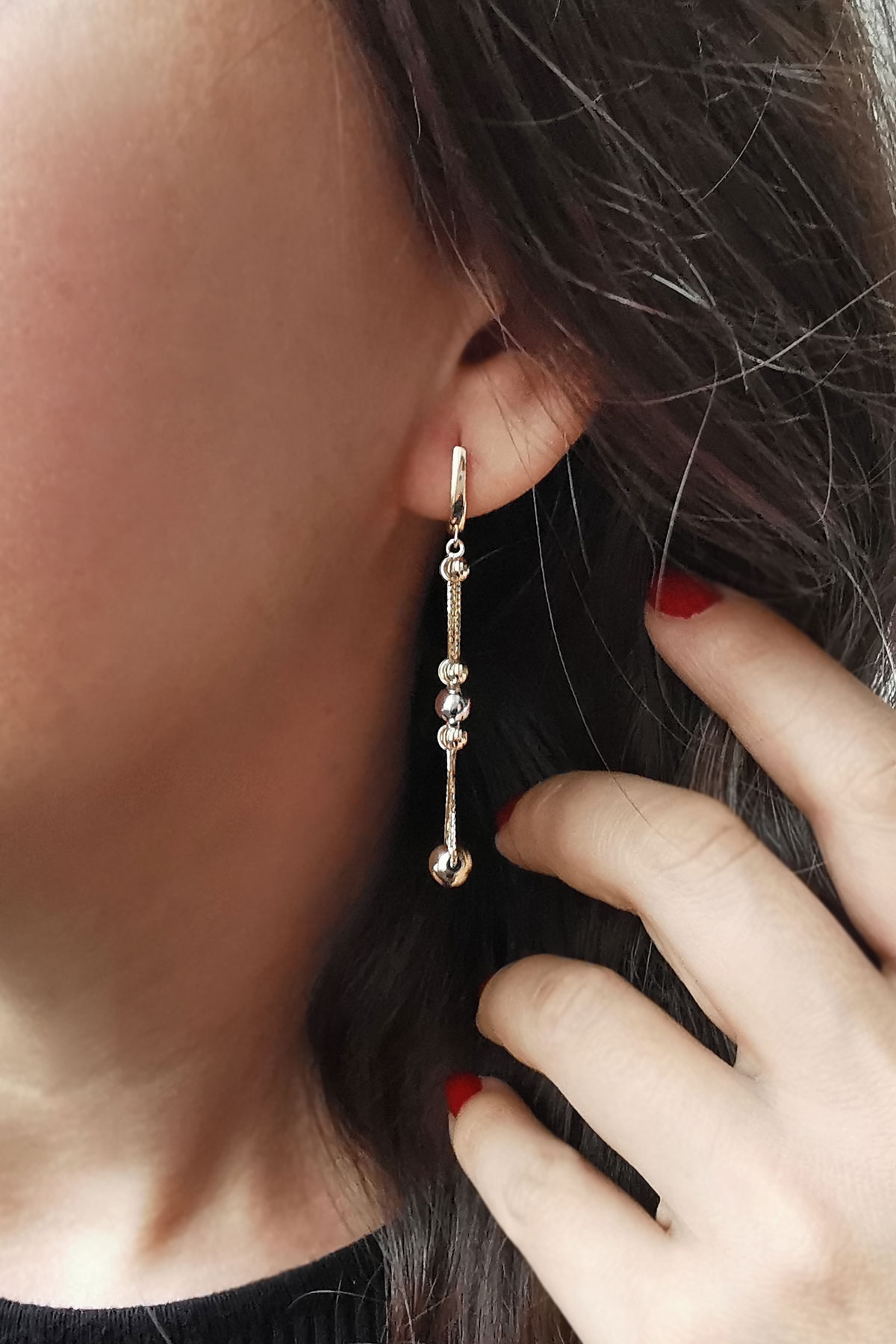 3.85 Gram Ağırlığında Tasarımındaki Detaylar İle Dikkarleri Üzerine Toplayan 14 Ayar Modern ve Şık Bir Havaya Sahip Taşsız Sallantılı 6 Cm Boyunda Sallantılı Altın Küpe.