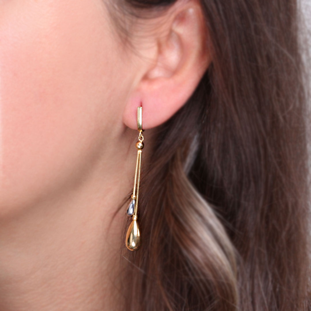 4.05 Gram Ağırlığında 14 Ayar Spor ve Günlük Kullanıma Uygun Sallantılı Drop Toplu 6 Cm Uzunluğunda Şık Model Altın Küpe.