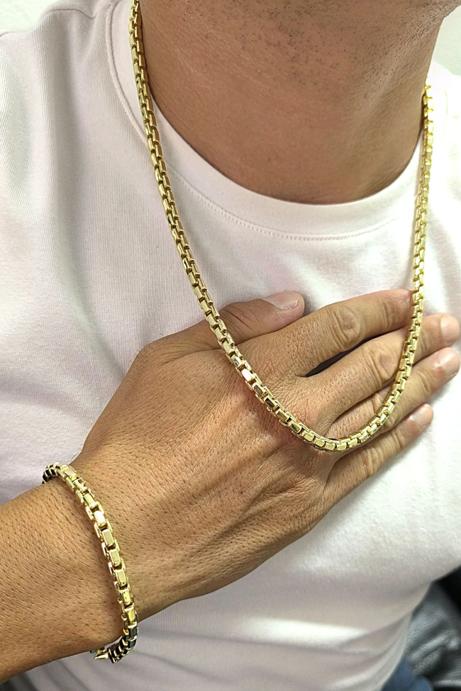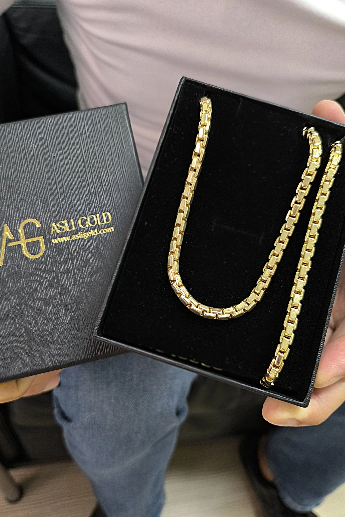 Modern Şehirli Tarz 60 Cm Boyunda Kolyesiyle 5.3 Mm Eninde Yuvarlak Küp 40.15 Gr. Ağırlığında 14 Ayar Altın Erkek Kolye Bileklik Set.