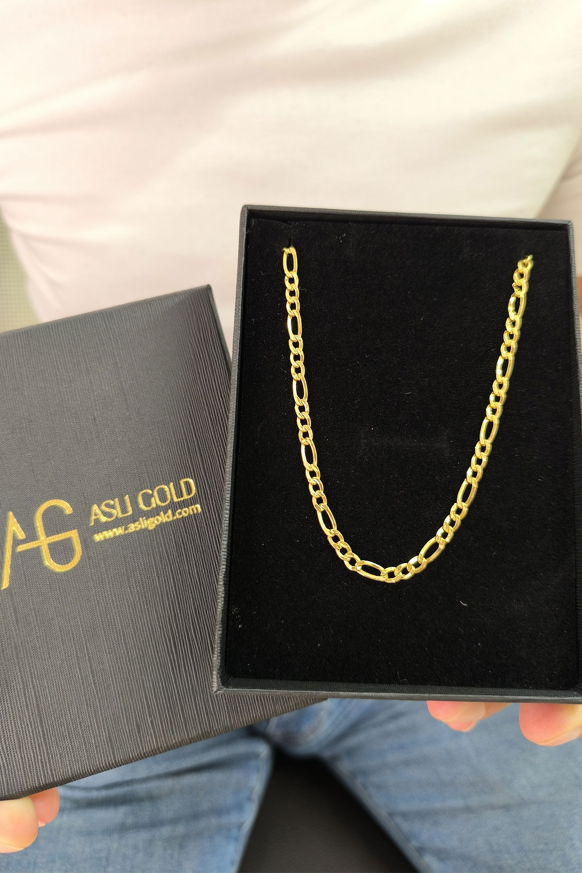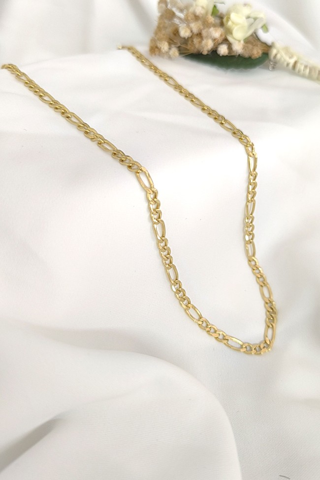 Spor Tasarım 65 Cm Uzunluğunda 8.00 Gr. Ağırlığında 14 Ayar Altın Modern Günlük Kullanıma Uygun 4 Mm En Kalınlığında Figaro Zincir Erkek Kolye.