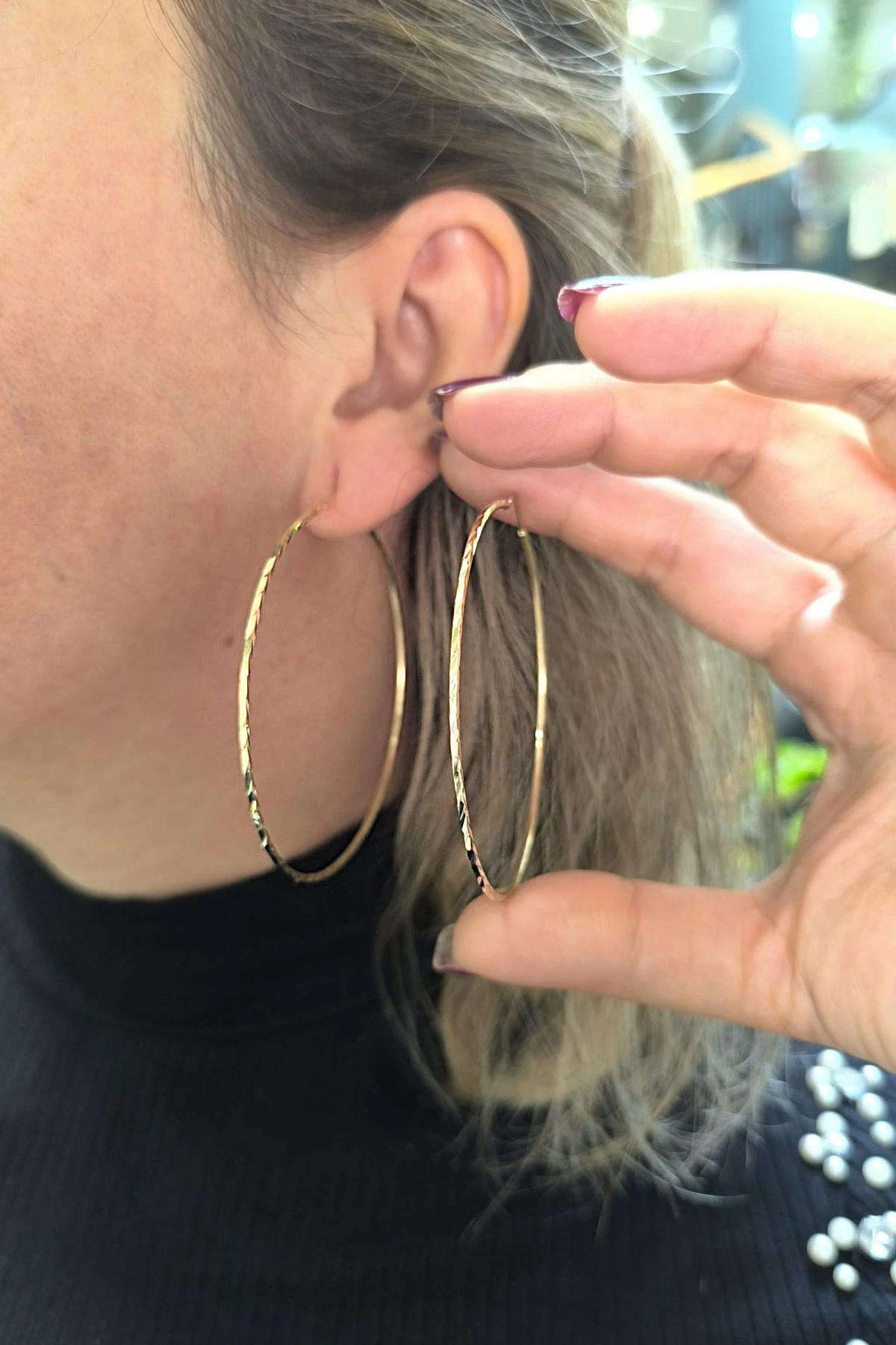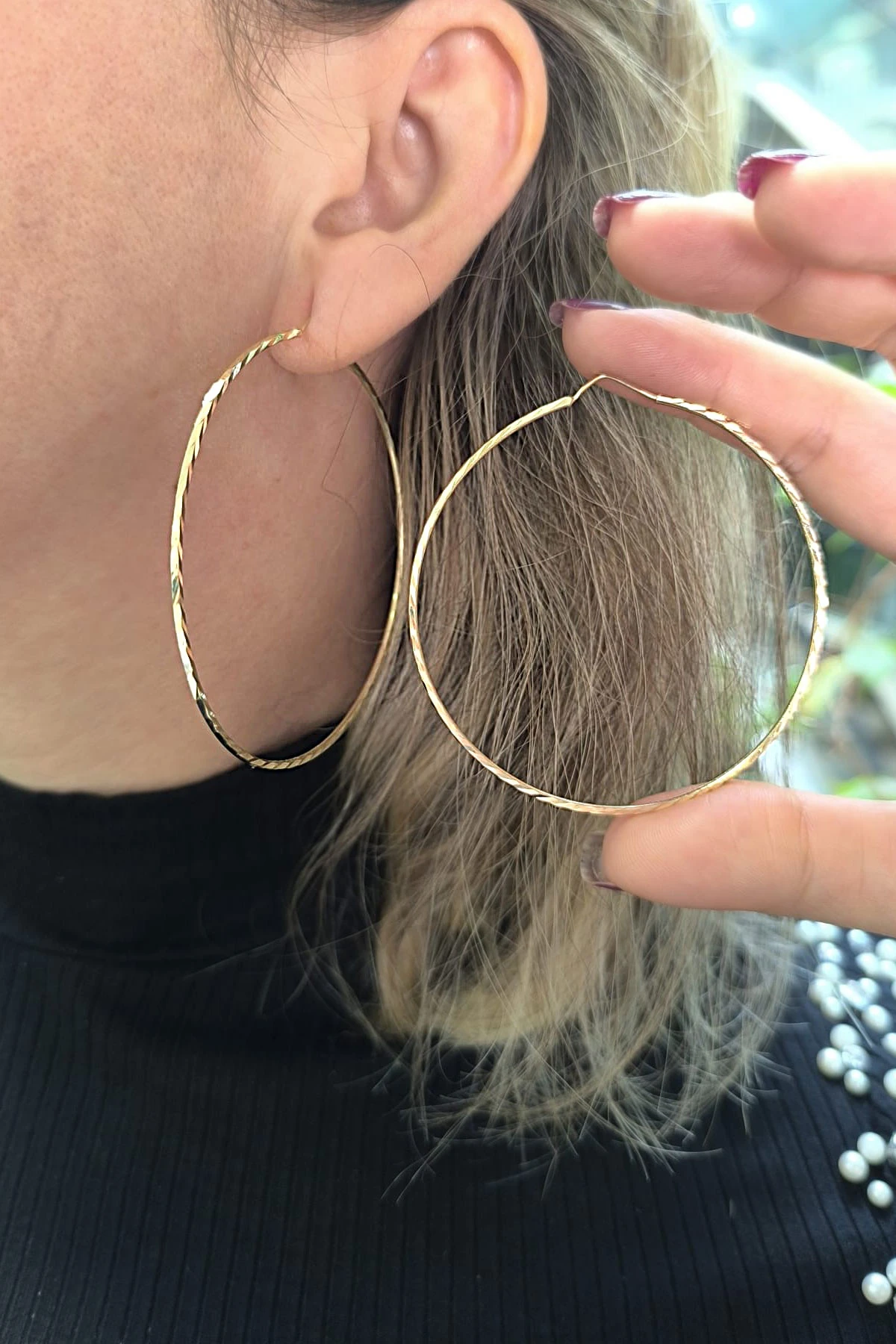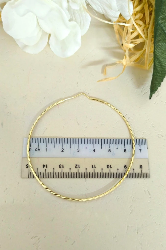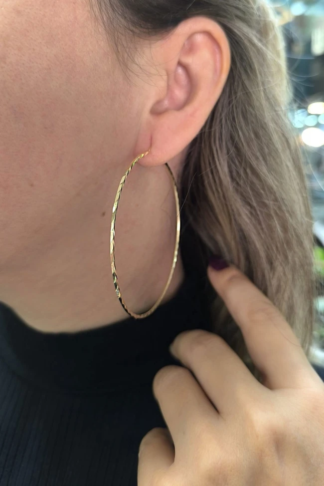 14 Ayar Altın 6.5 Cm Çapında Büyük Boy Halka Küpe. Hafif gösterişli ve günlük kullanıma uygun halka kalem işlemeli küpeyi farklı kolyelerinizle kombine olarak kullanabilirsiniz. Kulağınızda oldukça hafif ve rahat kullanacağınız bir modeldir. *Ürünleriniz özel hediye kutusunda garanti belgesi ve ücretsiz sigortalı kargoyla gönderilmektedir, güvenle satınalabilirsiniz.