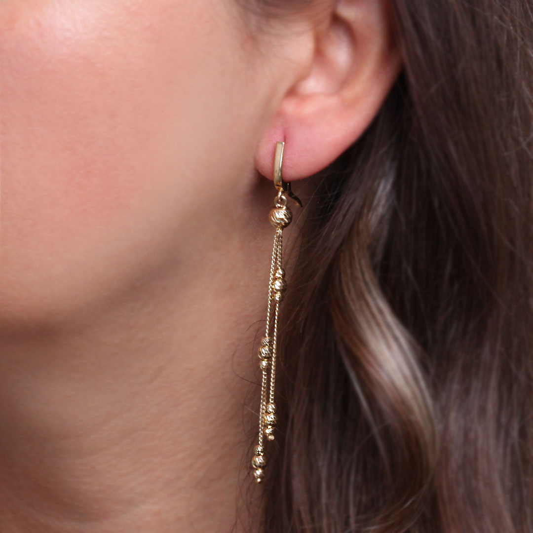 6.15 Gram Ağırlığında 14 Ayar Günlük Kullanıma Uygun Şık Model 9 Cm Sallantılı Zincirli Altın Dorika Küpe.