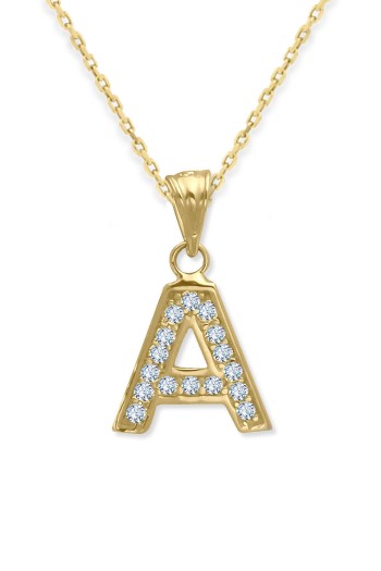 14 Ayar Altın A Harfi Zirkon Taşlı Sade Tasarım Kolye.