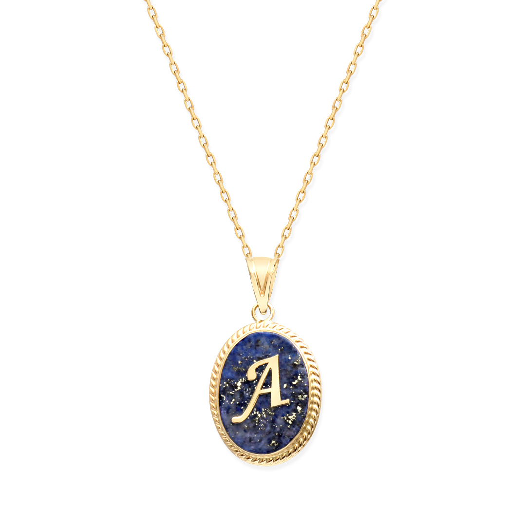 Lapis, lazunili diğer adı lacivert taşı üzerinde harfli trend sezon modası A harfi kolyeyi günlük olarak takabilirsiniz. Lapis taşı bir çeşit bakır cevheridir, kristal yapısı birbirine dik ama farklı uzunlukta eksenlere sahiptir. İçerisinde gece gökyüzüne dağılmış yıldızlar gibi altın rengi prit parçaları bulunur, evrenin gücünü ve enerjisini alıp beynimize yönlendirir.