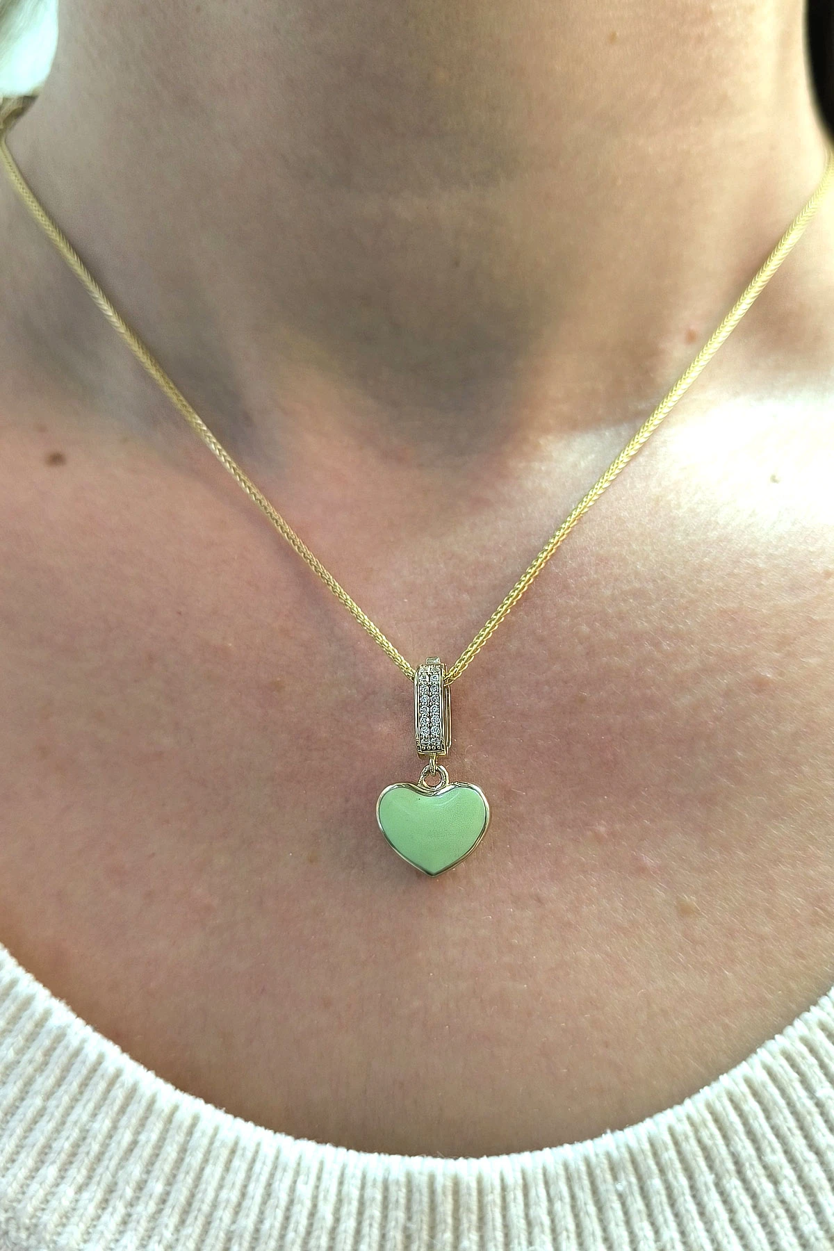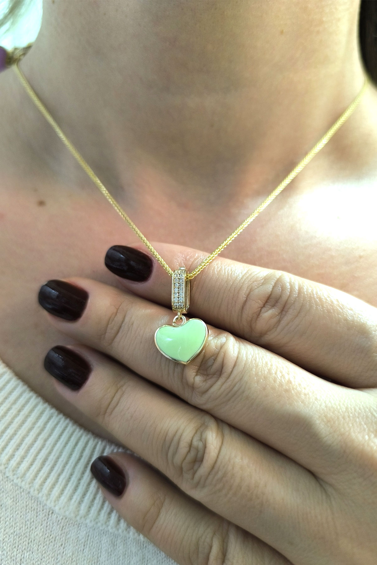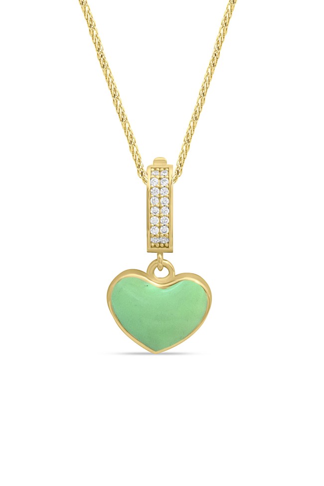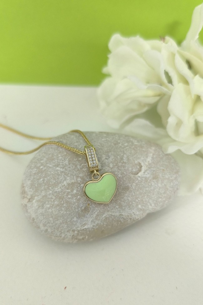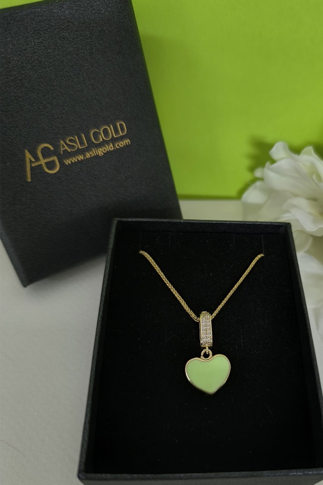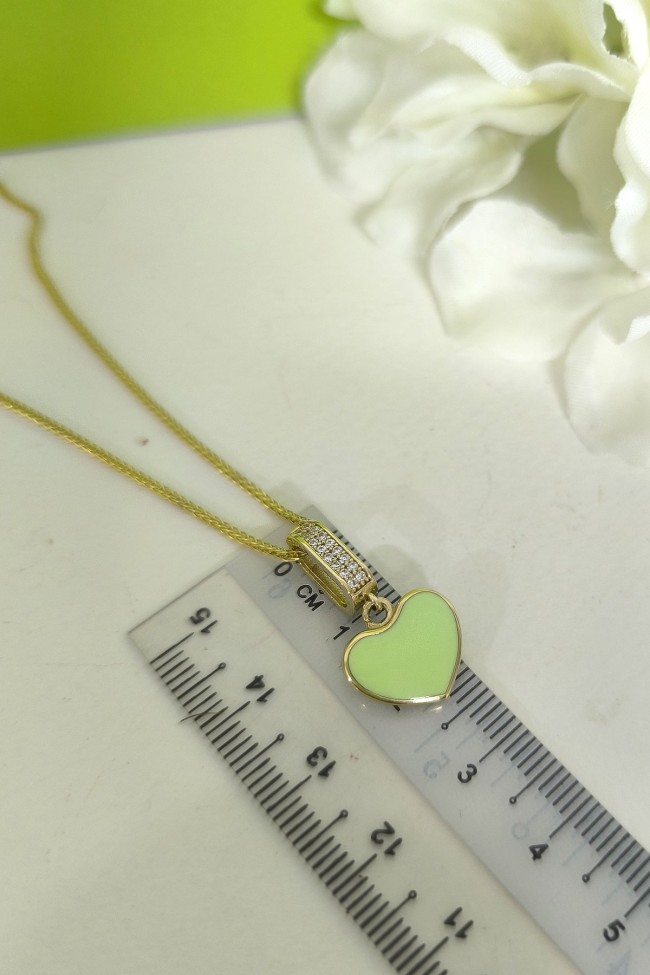 2.5 Cm Boyunda Kendinden 45 Cm Zincirli 14 Ayar Açık Yeşil Mineli Renkli Spor Tasarıma Sahip Işıl Işıl Günlük Kullanıma Uygun 4.00 Gr. Ağırlığında Altın Kalpli Kolye.