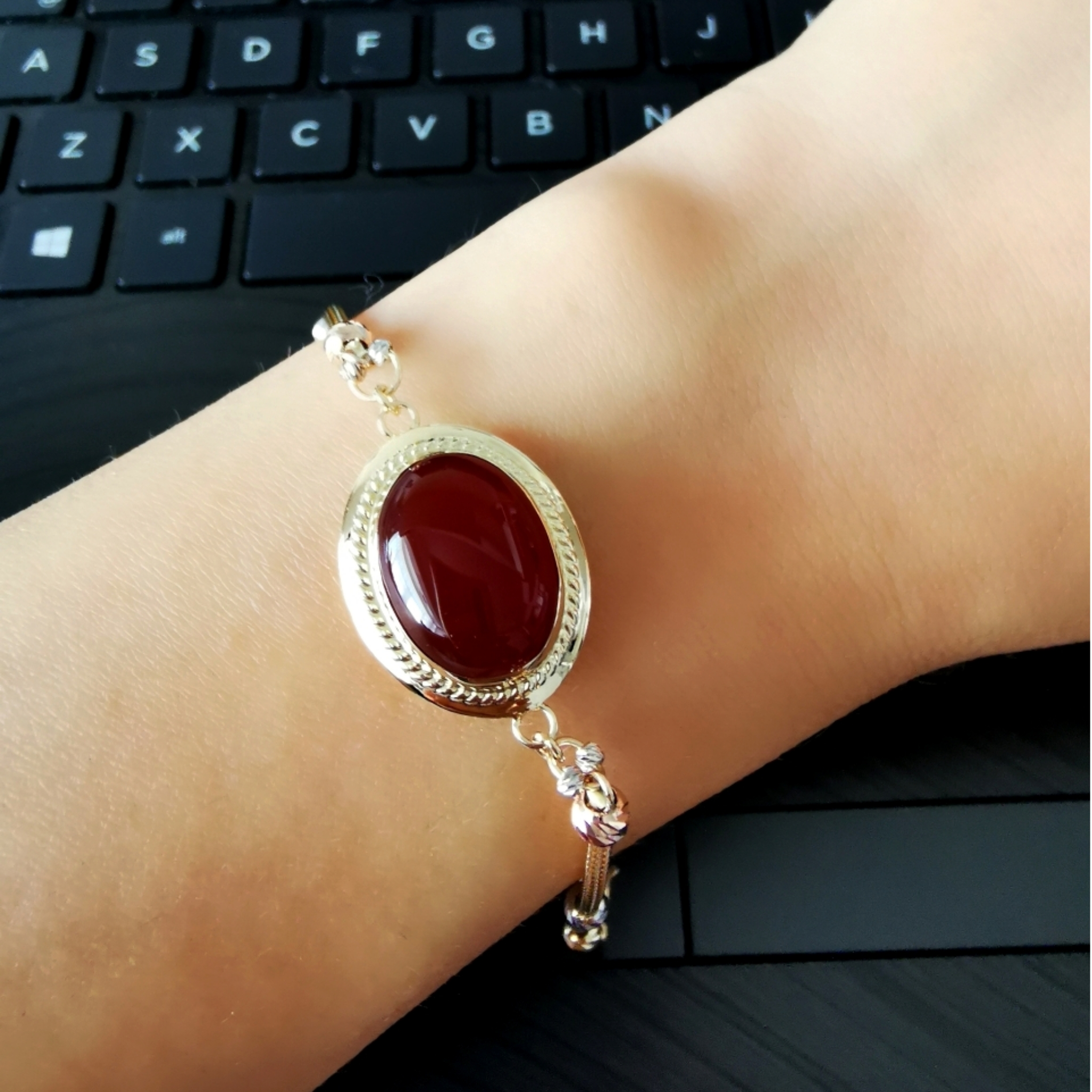 5.25 Gram ağırlığında akik taş detaylı spor ve sade günlük kullanıma uygun tüm gün tarzınıza eşlik edecek 14 ayar altın bileklik.