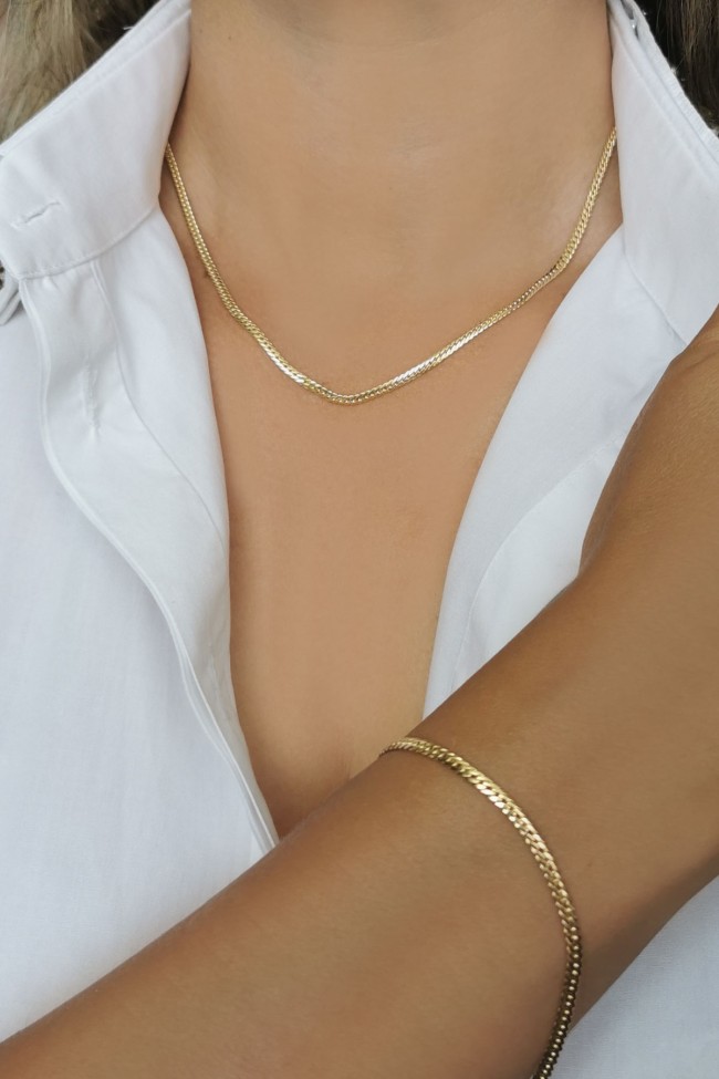 14 Ayar spor  ve şık duruşa sahip günlük kullanıma uygun 5.55 gram ağırlığında altın ezme gurmet bileklik kolye takım.