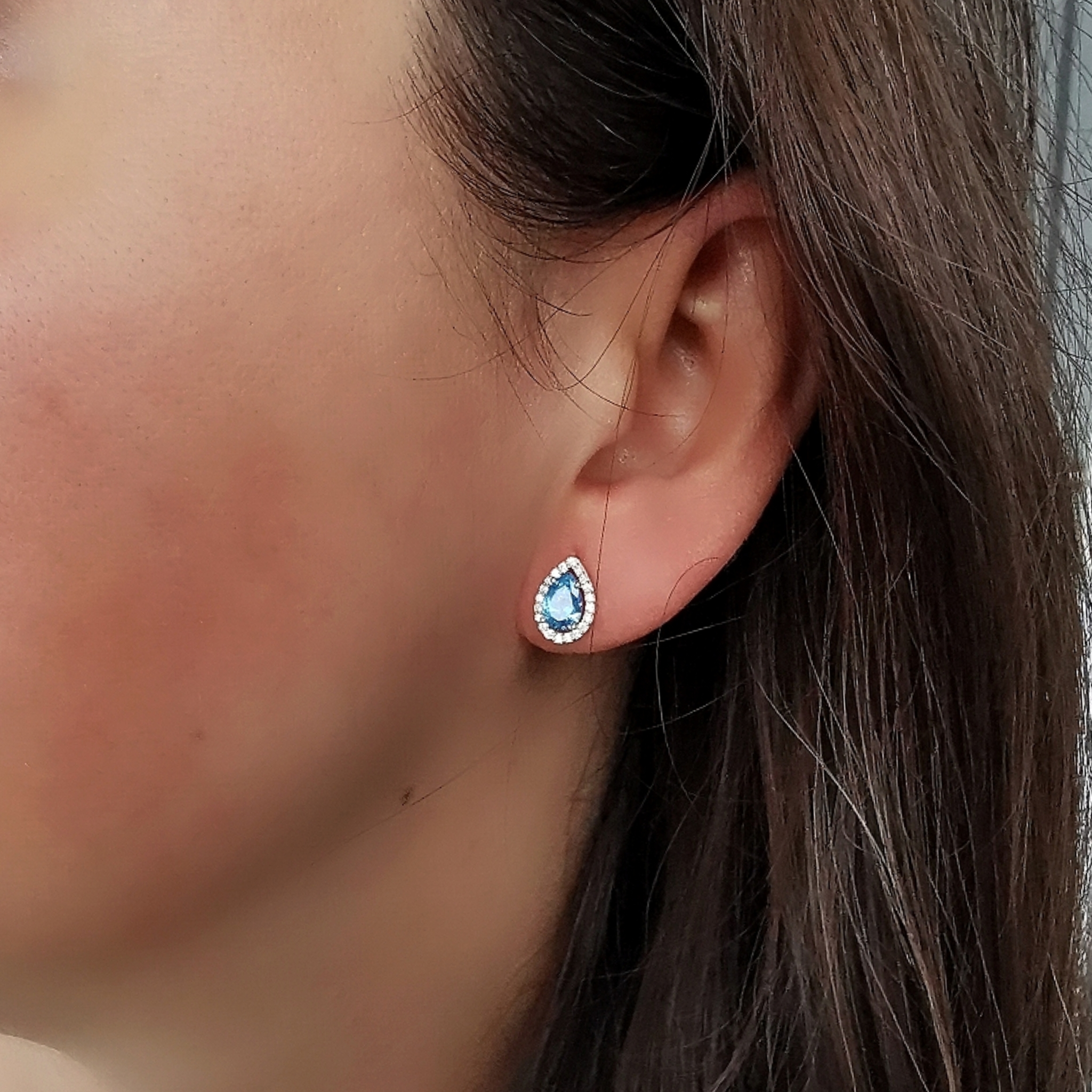 1.25 Gram ağırlığında zirkon aqua taşlı ışıl ışıl bir havası olan günlük tarzınıza eşlik edecek 14 ayar altın küpe.