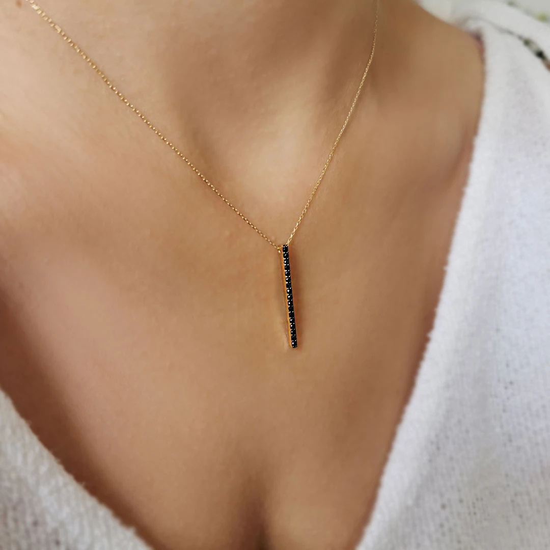 45 Cm zincirli 1.70 gr. 3 cm boyutunda brown taşlı çubuk model 14 ayar altın spor kolye. Farklı zincirlerinizle bir arada kombine olarak kullanabileceğiniz harika bir model.