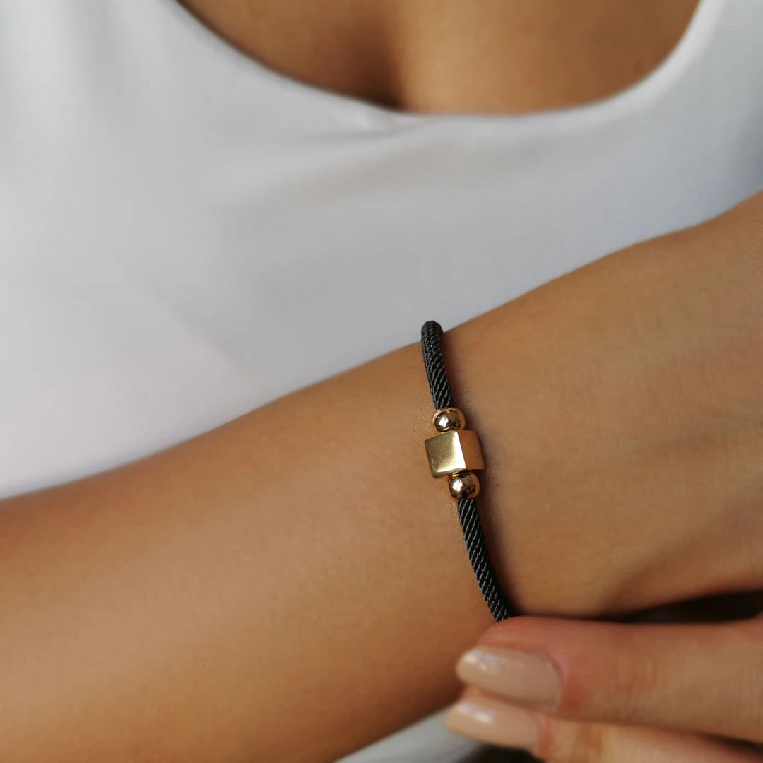 Küp ve top detaylı tasarımı ile günlük olarak da kullanabileceğiniz, özel günlerinde sevdiklerinize şık bir hediye seçeneği olacak 0.75 gr ağırlığında 14 ayar altın taşsız füme özel örgü ip detaylı unisex kullanıma uygun spor bileklik.