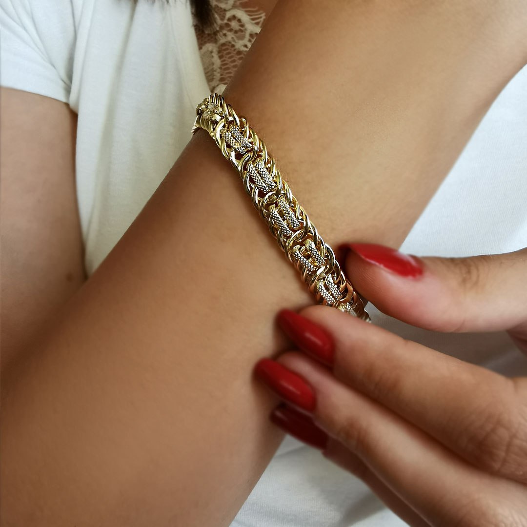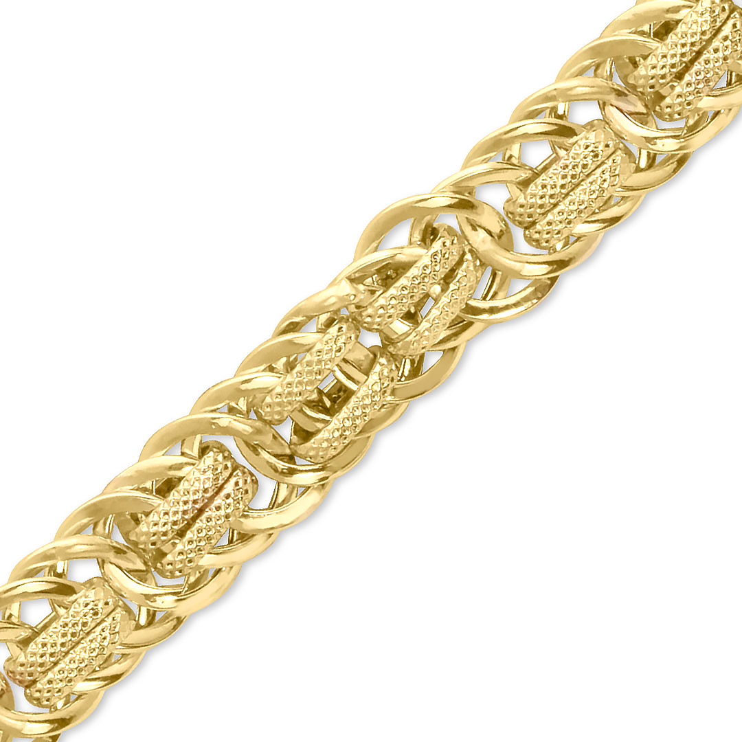 18.5 Cm boyunda hem spor hem fantazi tasarımı ile günlük olarak da kullanabileceğiniz 14 ayar 7.00 gr ağırlığında altın hallow bileklik.