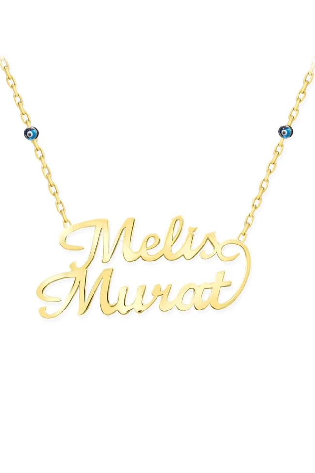 14 Ayar altın el yazısıyla yazılı iki isimli kolye.