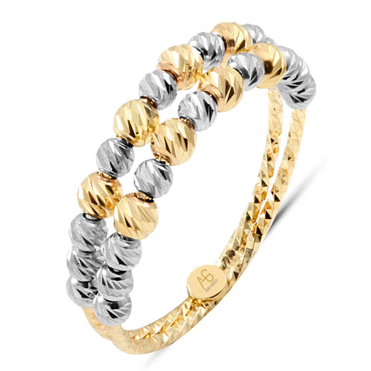 2 sıra, sarı beyaz altın topların kombinasyonuyla tasarlanmış ışıl ışıl modern ve spor tasarıma sahip 2.80 gram ağırlığında dorika 14 ayar yüzük. İsterseniz orta parmak isterseniz yüzük parmağınızda kullananın, günlük şıklığınıza hava katın! *Ürünlerimiz faturalıdır güvenle satın alabilirsiniz, özel hediye kutusunda ücretsiz kargo ile gönderilecektir.
