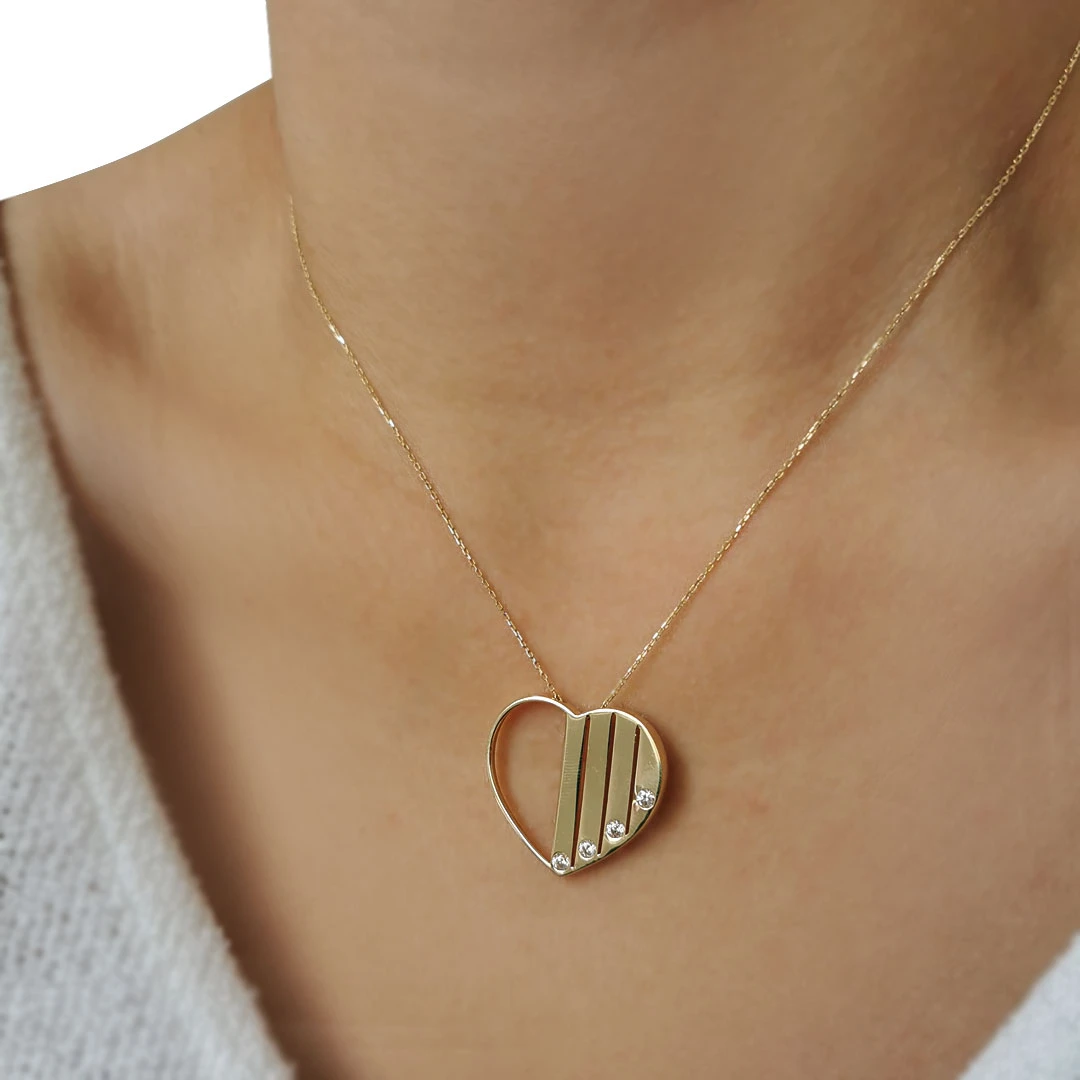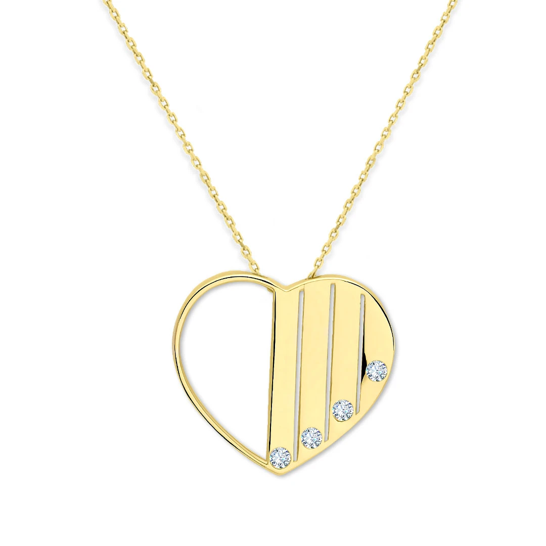 45 Cm zincirli 3.20 gr. 2.4 cm boyutunda zirkon taşlı model 14 ayar altın şık ve hoş bir duruşa sahip kalp kolye. *Ürünlerimiz faturalıdır güvenle satın alabilirsiniz, özel hediye kutusunda ücretsiz kargo ile gönderilecektir.