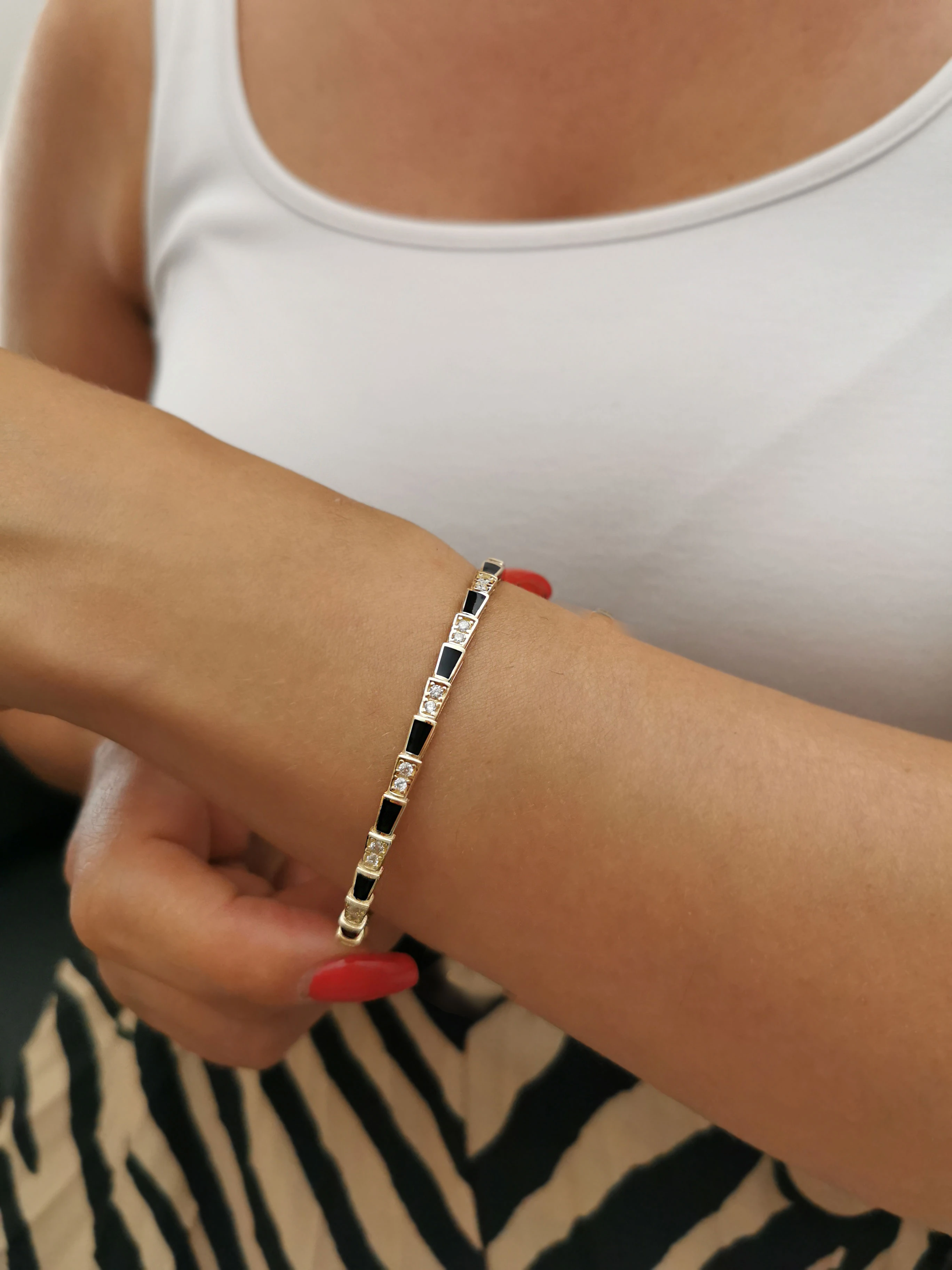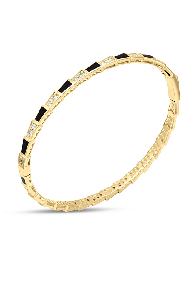 9.30 Gram Ağırlığında 14 Ayar Mine Detaylı Spor Ve Modern Tasarımıyla Farklı Bir Havaya Sahip Bulgari Yılan Altın Bilezik.