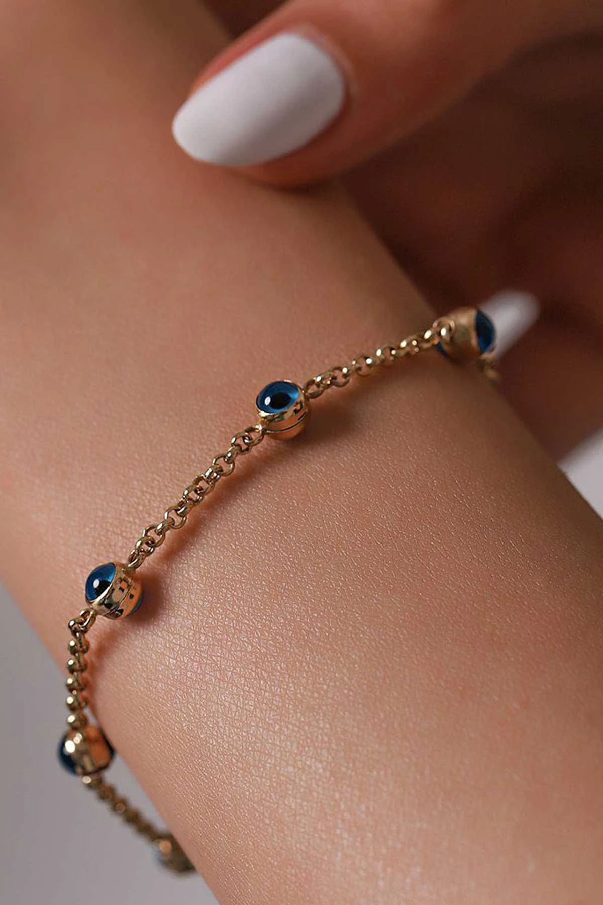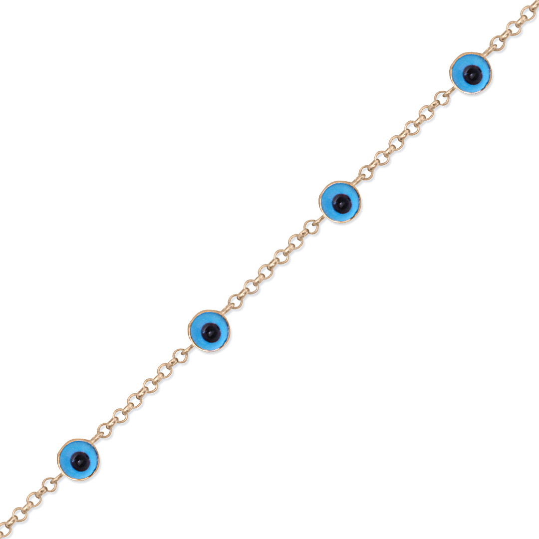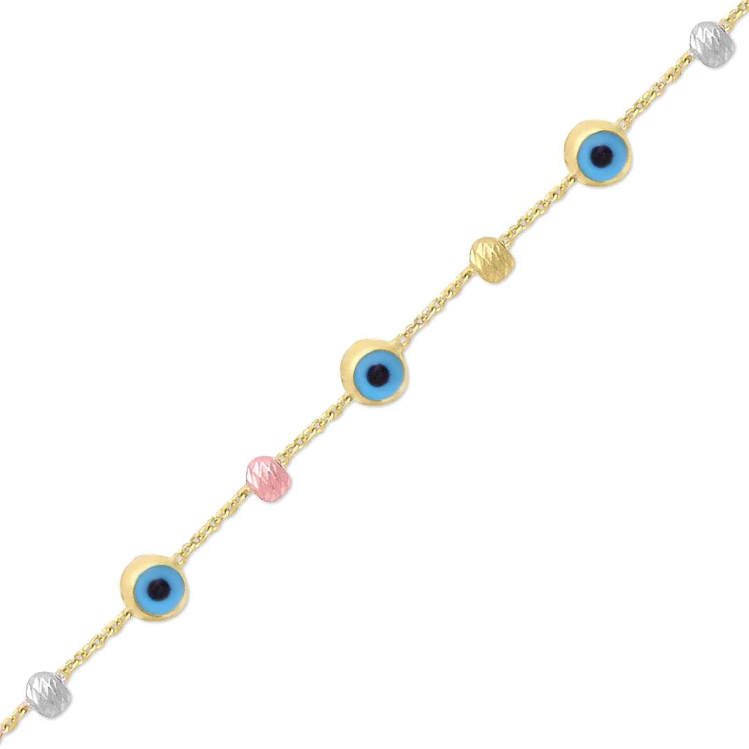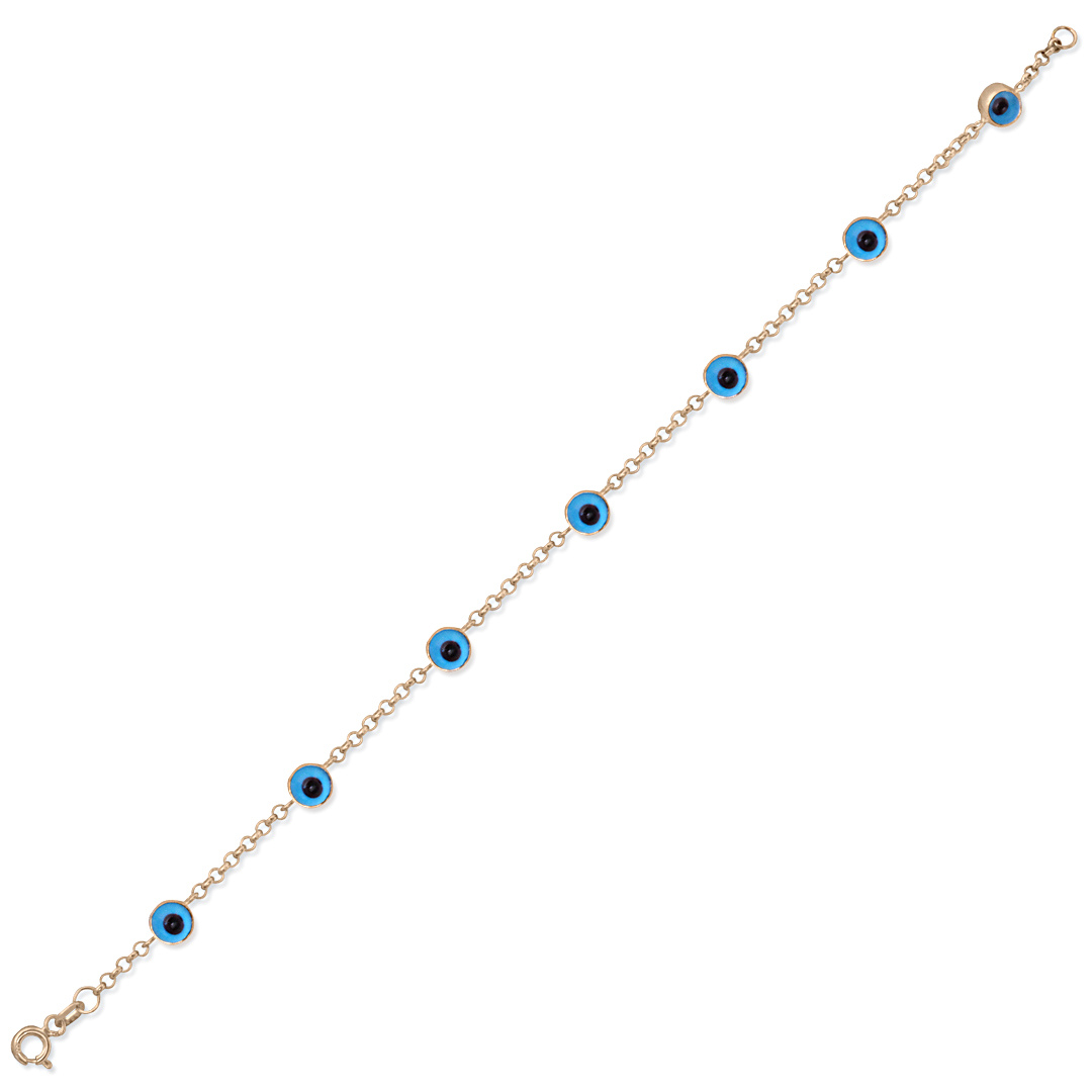 14 ayar altın nazar boncuklu yeni model 7 gözlü kalze zincir kombinasyonlu model ile şık bir tarz yakalayın. Model boyutu 18 cm olup 3.10 gram ağırlığındadır.