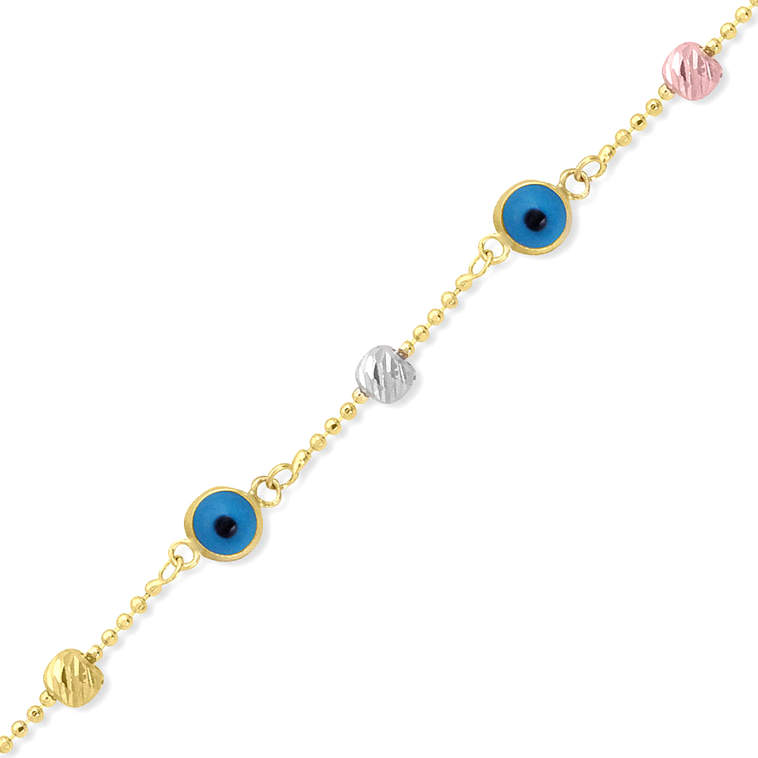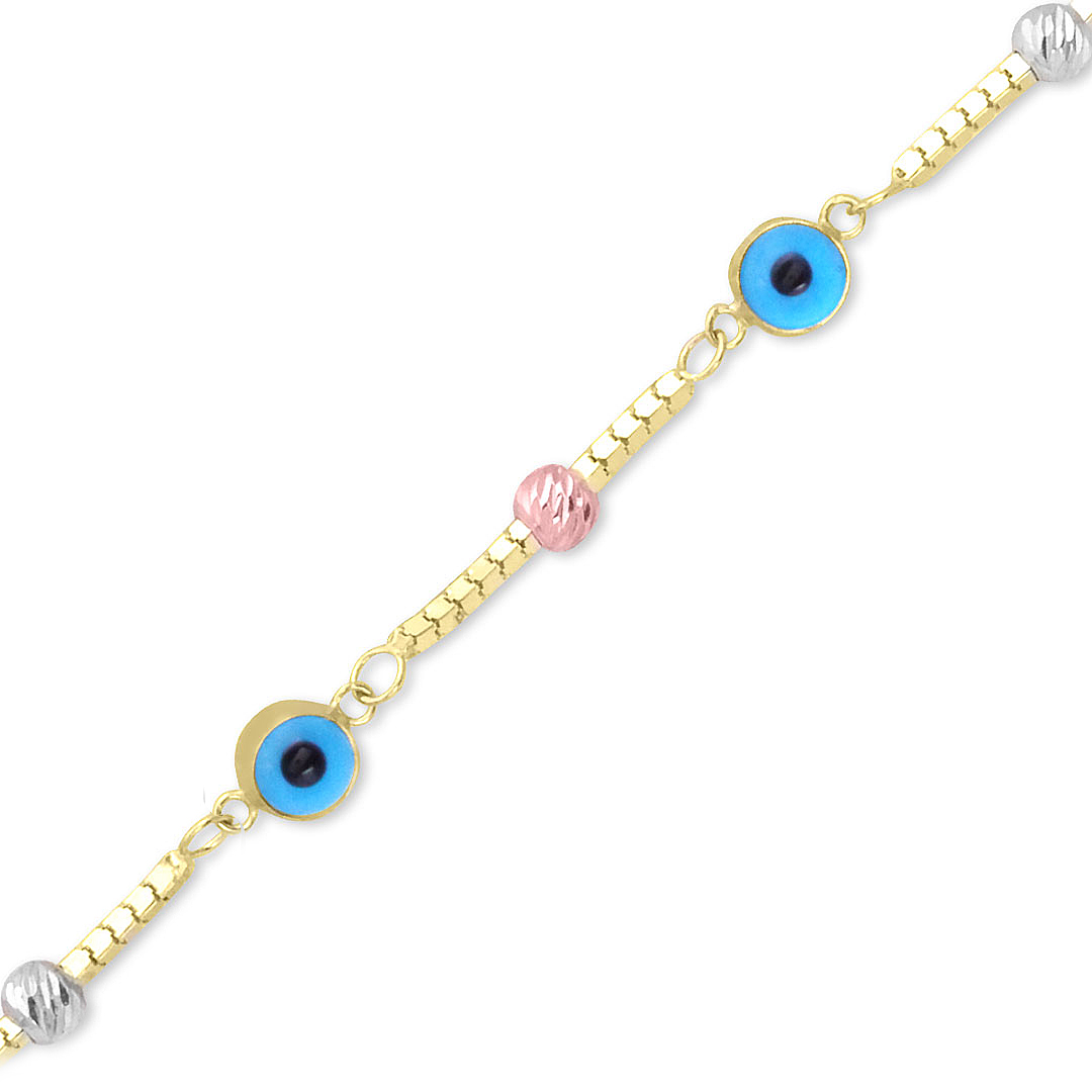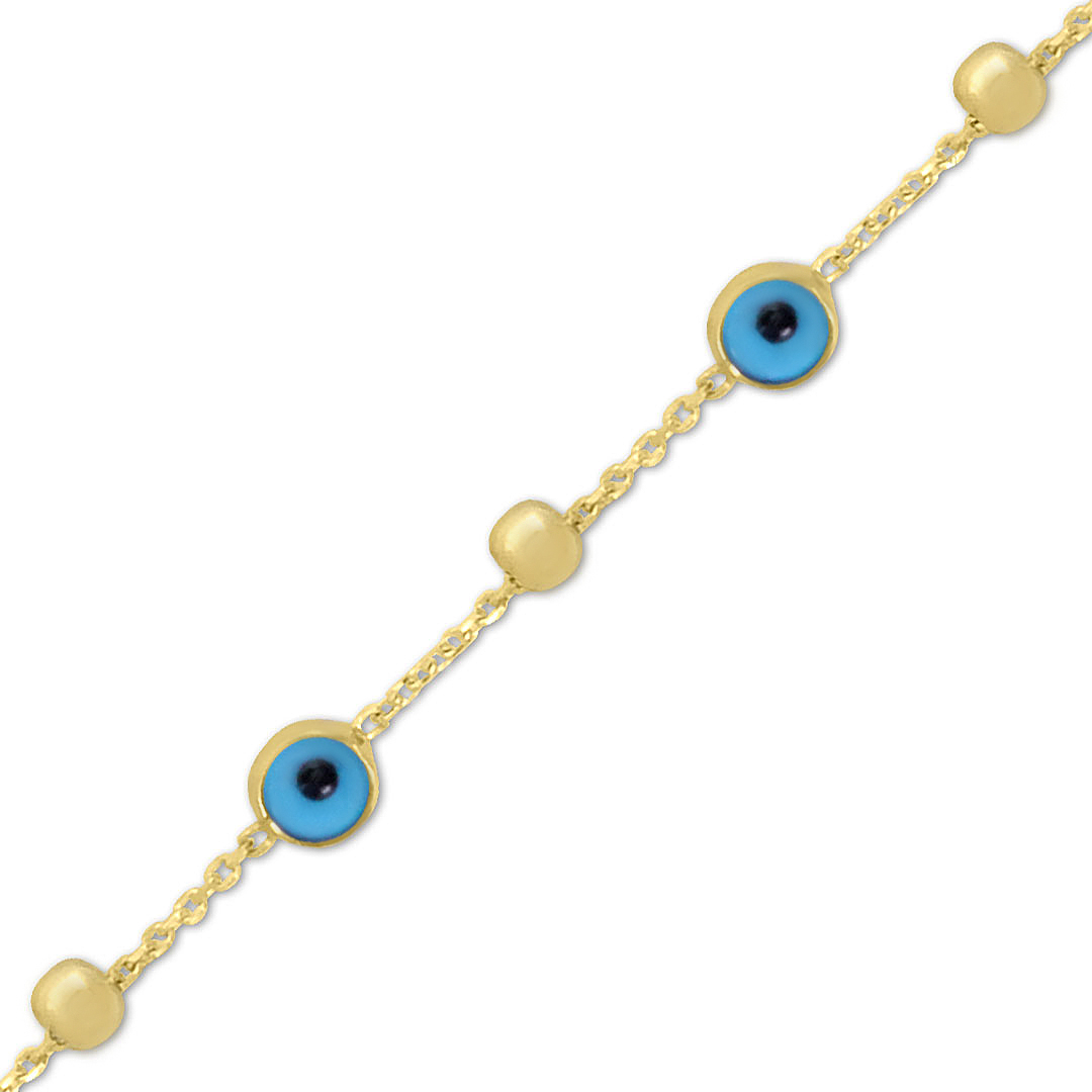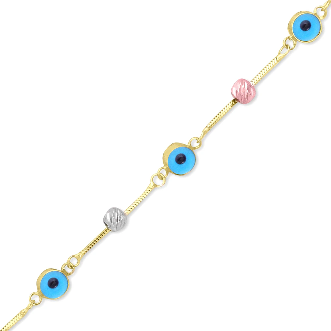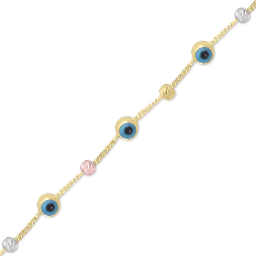 14 ayar altın nazar boncuklu yeni model 7 gözlü kalze zincir kombinasyonlu model ile şık bir tarz yakalayın. Model boyutu 18 cm olup 3.10 gram ağırlığındadır.
