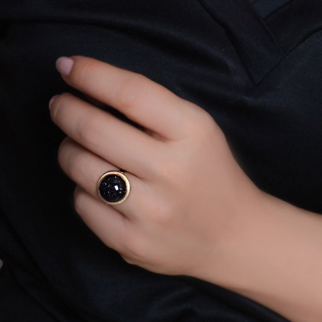 14 Ayar nostalji tasarımına eşlik eden yuvarlak simli siyah taş detaylı şık ve ışıltılı tasarımlara düşkün kadınların severek kullanacakları elegan duruşa sahip günlük kullanıma uygun 3.00 gram ağırlığında altın yüzük.