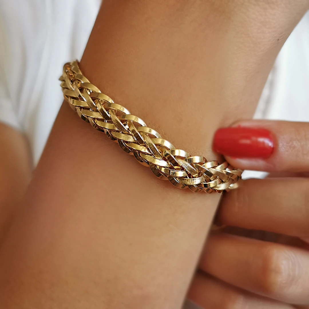 Hem spor hem fantazi tasarımı ile günlük olarak da kullanabileceğiniz 14 ayar 12.5 gr ağırlığında 14 ayar altın saç örgü bileklik.