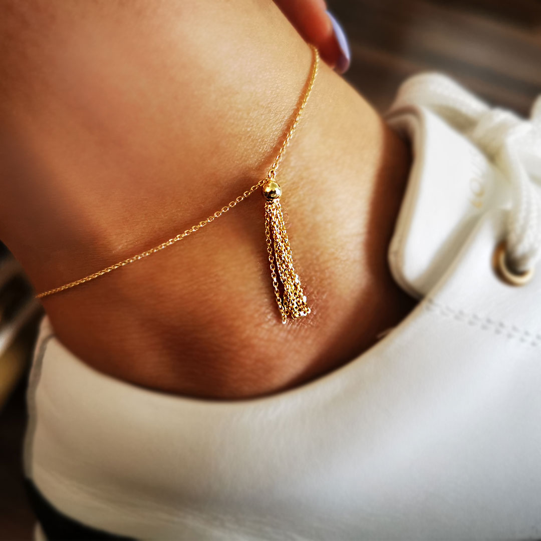14 Ayar Püskül Detaylı Işıl Işıl Modern Tasarım 1.90 Gr. Ağırlığında Altın Zincirli Halhal.