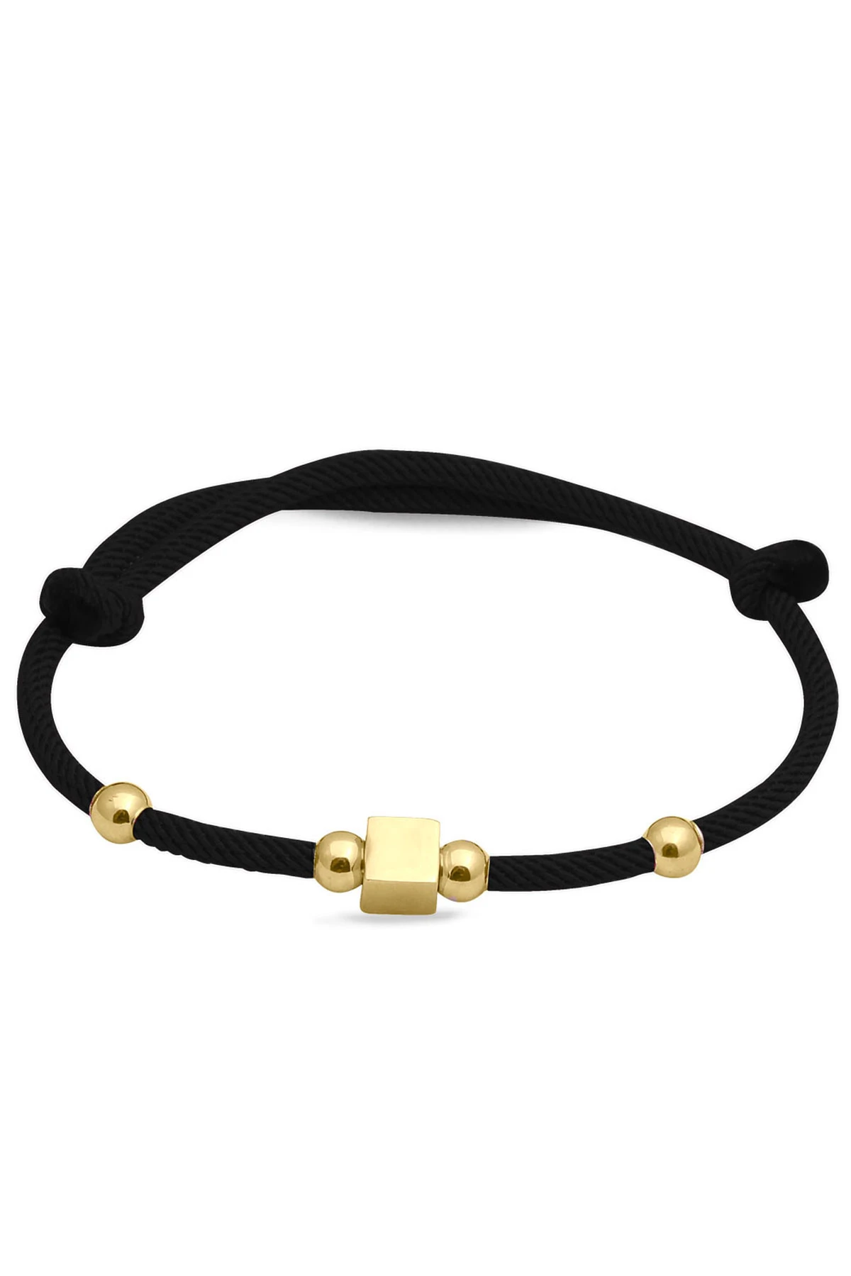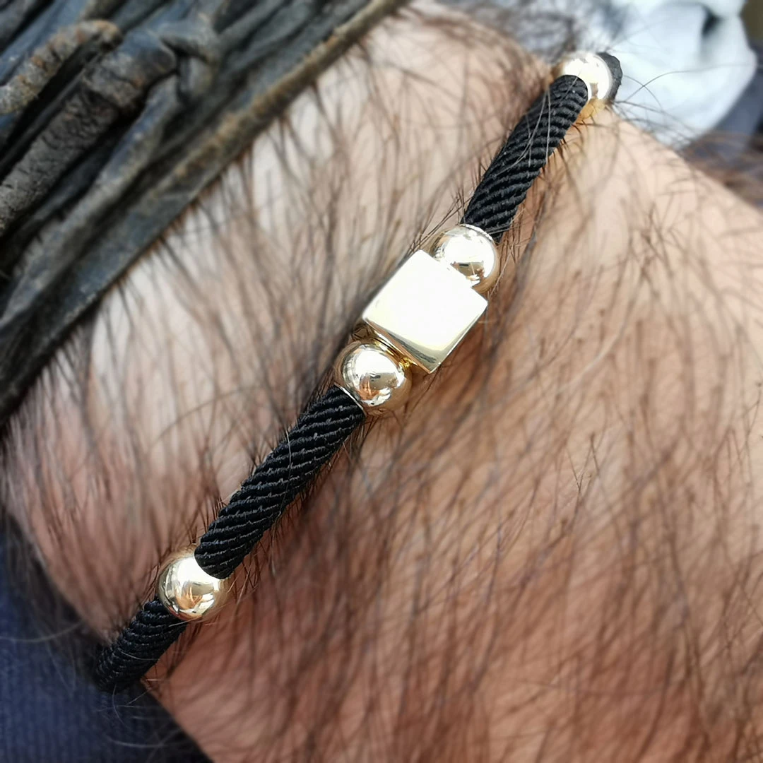 Küp ve top detaylı tasarımı ile günlük olarak da kullanabileceğiniz, özel günlerinde sevdiklerinize şık bir hediye seçeneği olacak 1.20 gr ağırlığında 14 ayar altın taşsız siyah özel örgü ip detaylı unisex kullanıma uygun spor bileklik.