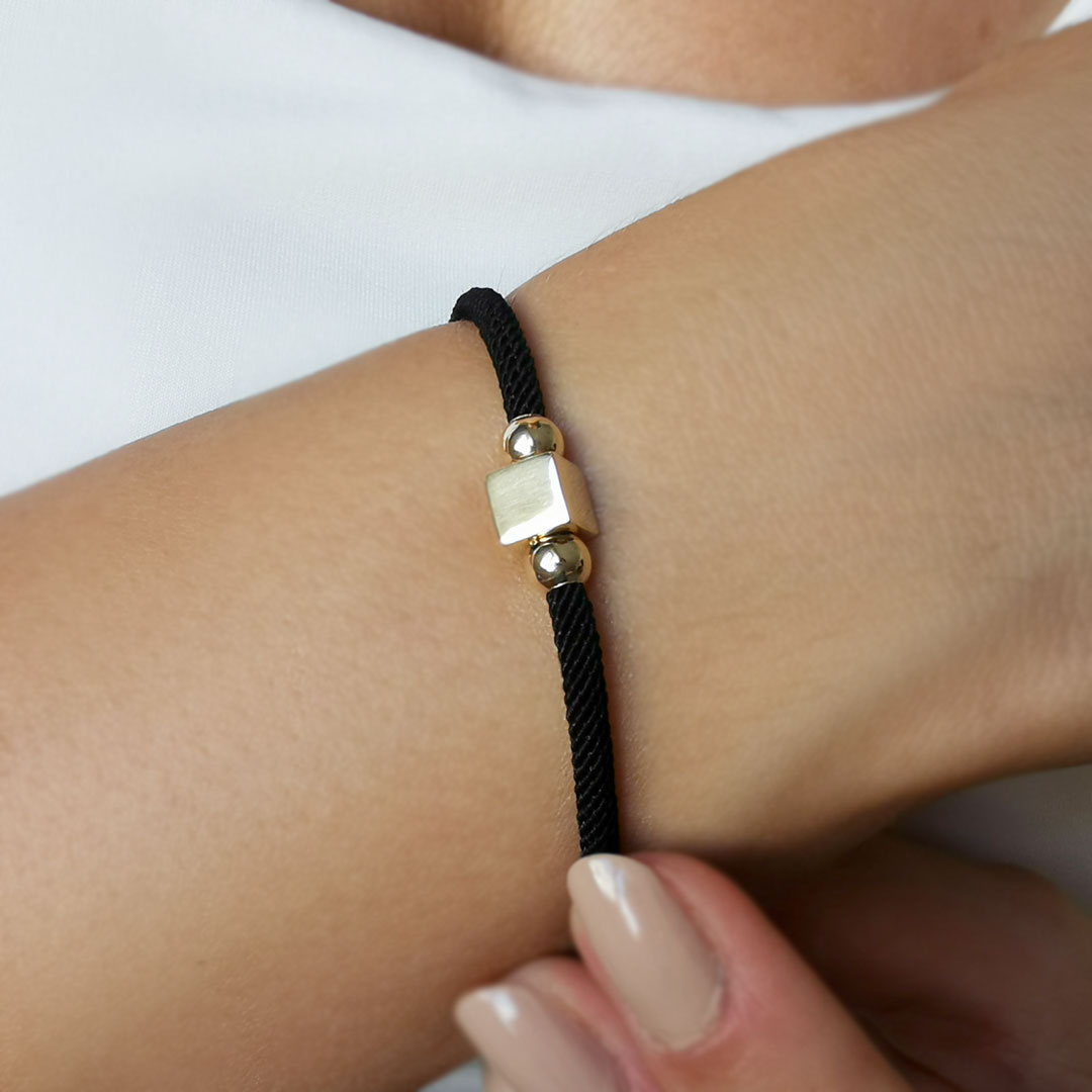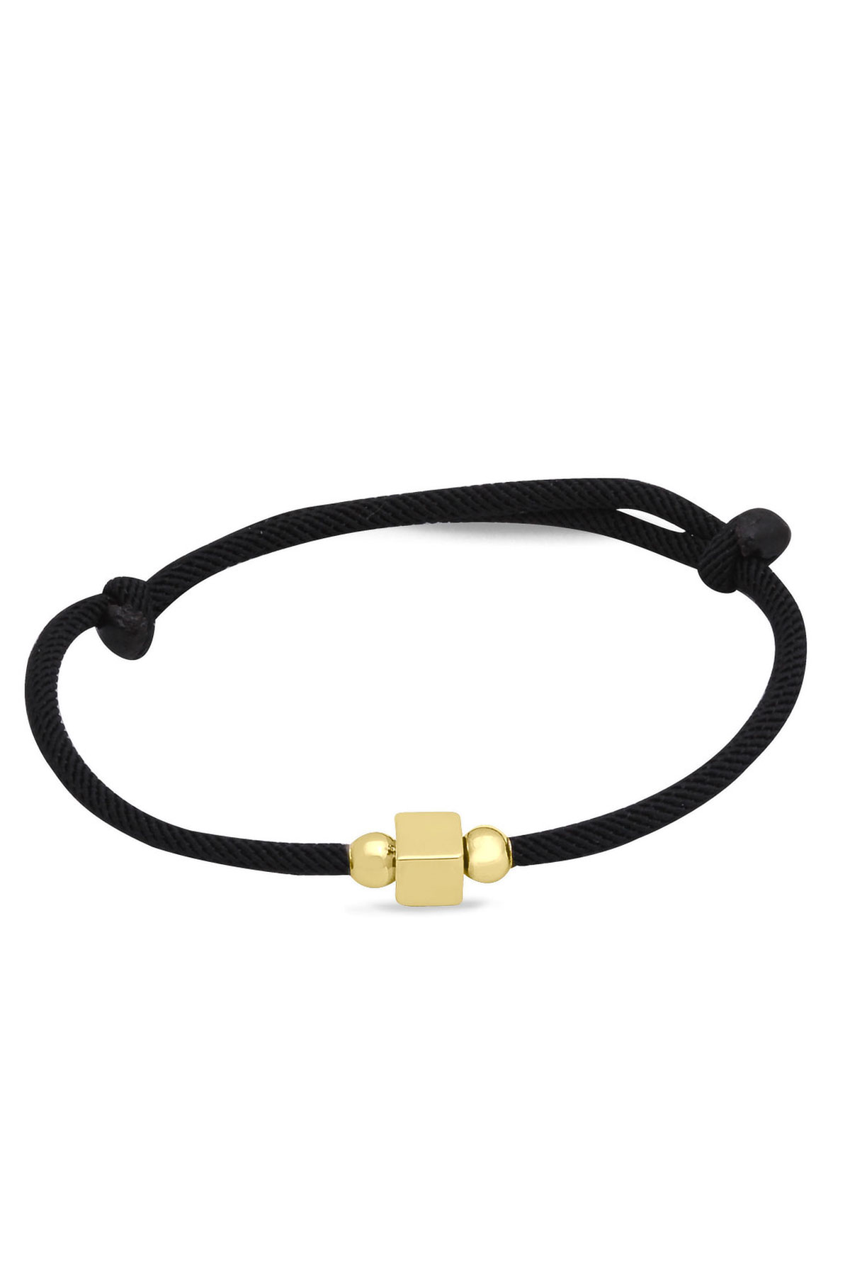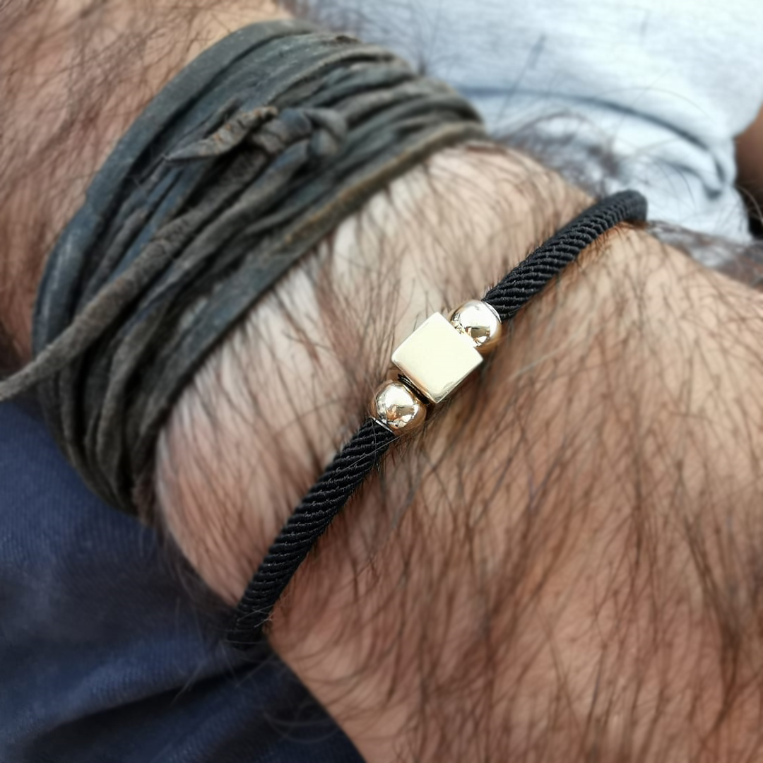 Küp ve top detaylı tasarımı ile günlük olarak da kullanabileceğiniz, özel günlerinde sevdiklerinize şık bir hediye seçeneği olacak 0.75 gr ağırlığında 14 ayar altın taşsız siyah özel örgü ip detaylı unisex kullanıma uygun spor bileklik.