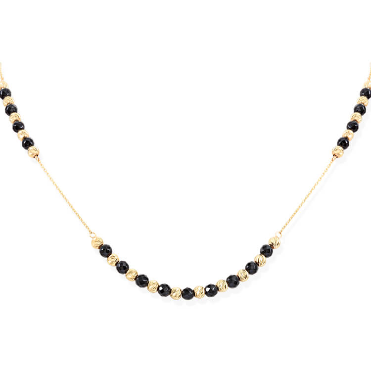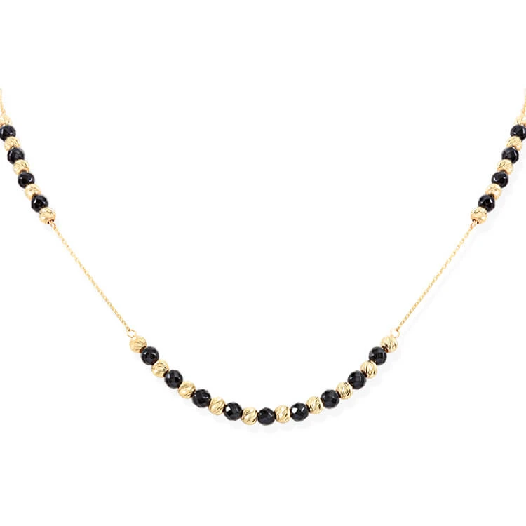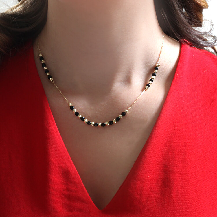 14 Ayar altın siyah taş detayları ile şık ve ışıl ışıl bir tasarıma sahip tek başına sizi gündüzden geceye her ortamda taşıyacak spor kolye.