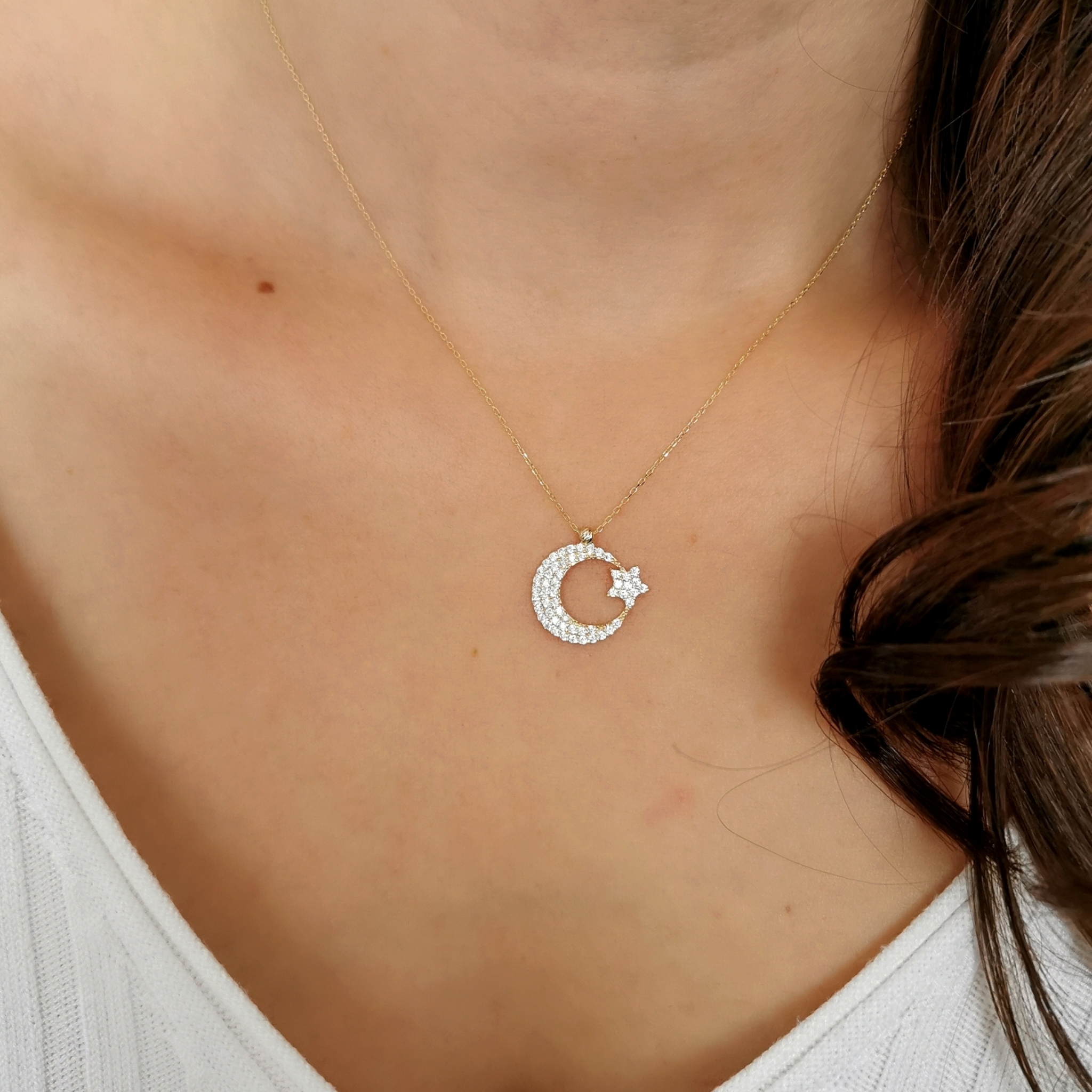 45 Cm kendinden zincirli 14 ayar milli gururumuz olan şanlı bayrağımızın temsilcisi altın 1.7 cm boyutunda ay yıldız kolye. Sadece milli günlerde değil, milli gururunu her daim yüreğinde taşıyanların boynundan ayırmak istemeyeceği harika bir tasarım. *Ürünlerimiz faturalıdır güvenle satın alabilirsiniz, özel hediye kutusunda ücretsiz kargo ile gönderilecektir.