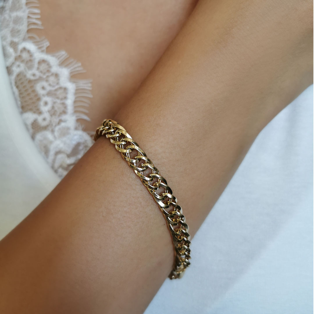 20.5 Cm boyunda hem spor hem fantazi tasarımı ile günlük olarak da kullanabileceğiniz 14 ayar 6.30 gr ağırlığında 14 ayar altın taşsız gurmet bileklik. *Ürünlerimiz faturalıdır güvenle satın alabilirsiniz, özel hediye kutusunda ücretsiz kargo ile gönderilecektir.