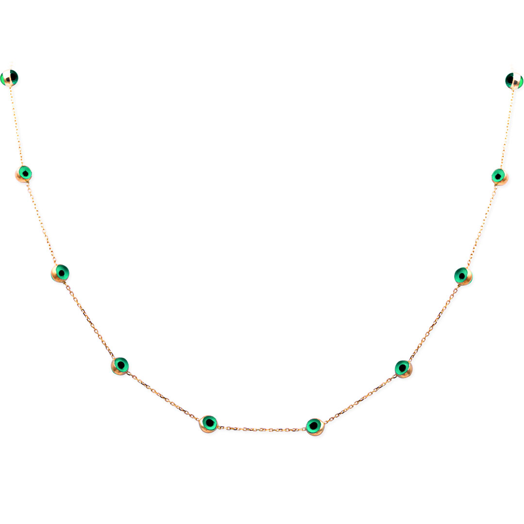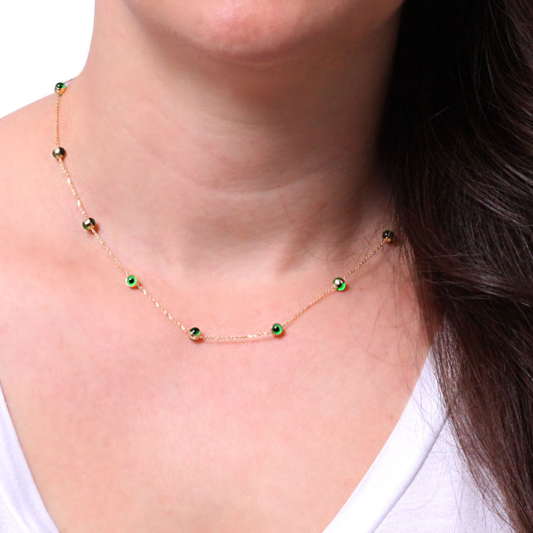 14 Ayar altın zarif tasarımıyla günlük kullanıma uygun ışıl ışıl nazar boncuklu kolye.