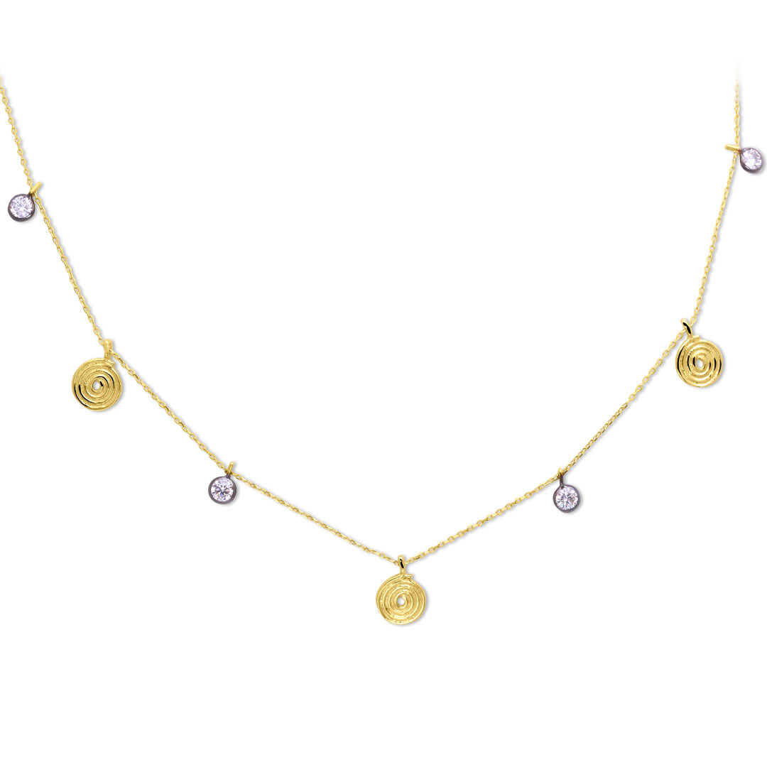 45 Cm zincirli 3.10 gr. pullu zarif model 14 ayar altın şık lava desenli yuvarlak sallantı ve taş detaylı altın kolye.