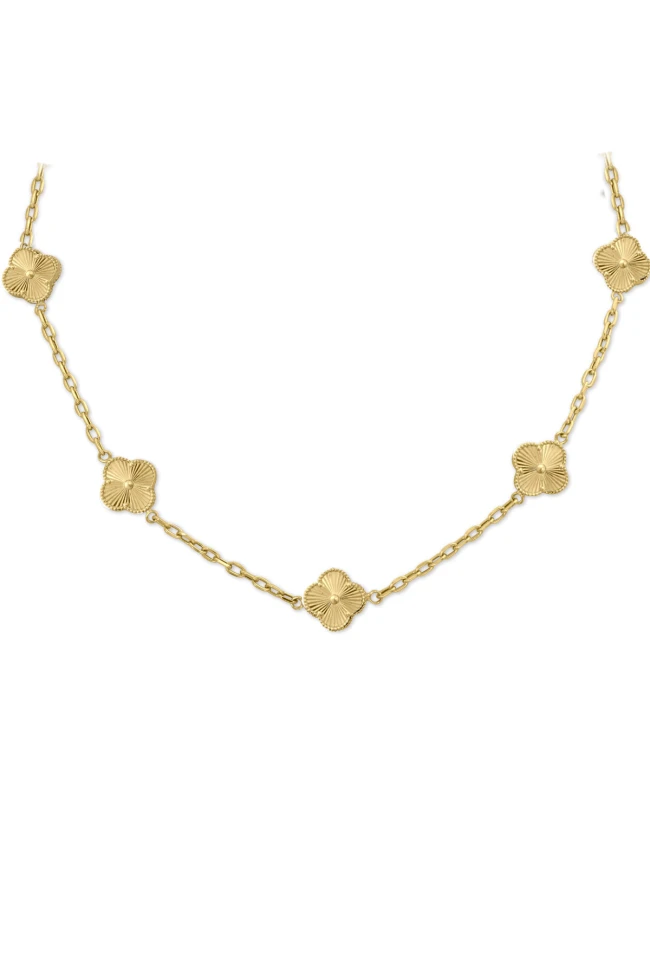 10.30 Gram Ağırlığında 45 Cm Yonca Kalemli Işıl Işıl Parçalardan Tasarlanmış Şık Bir Tarzı Olan 14 Ayar Altın Tasarım Kolye.