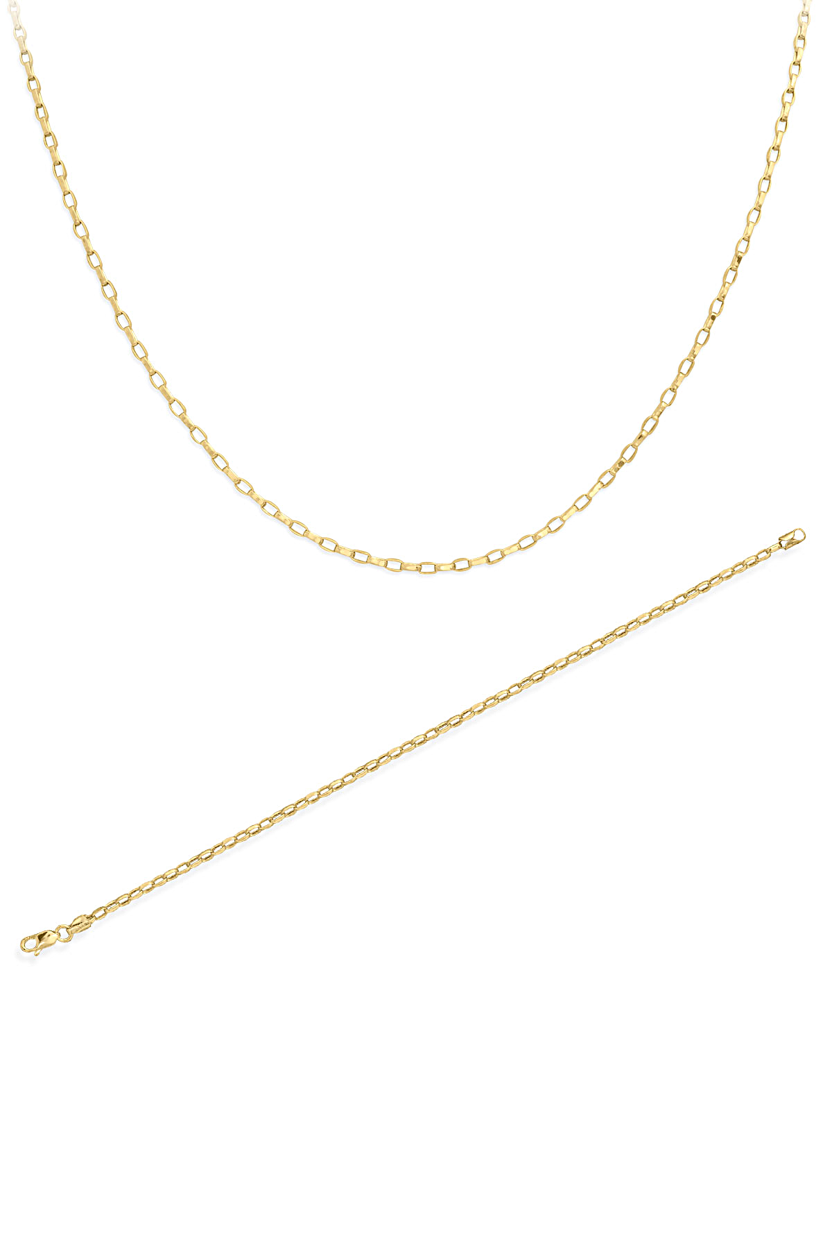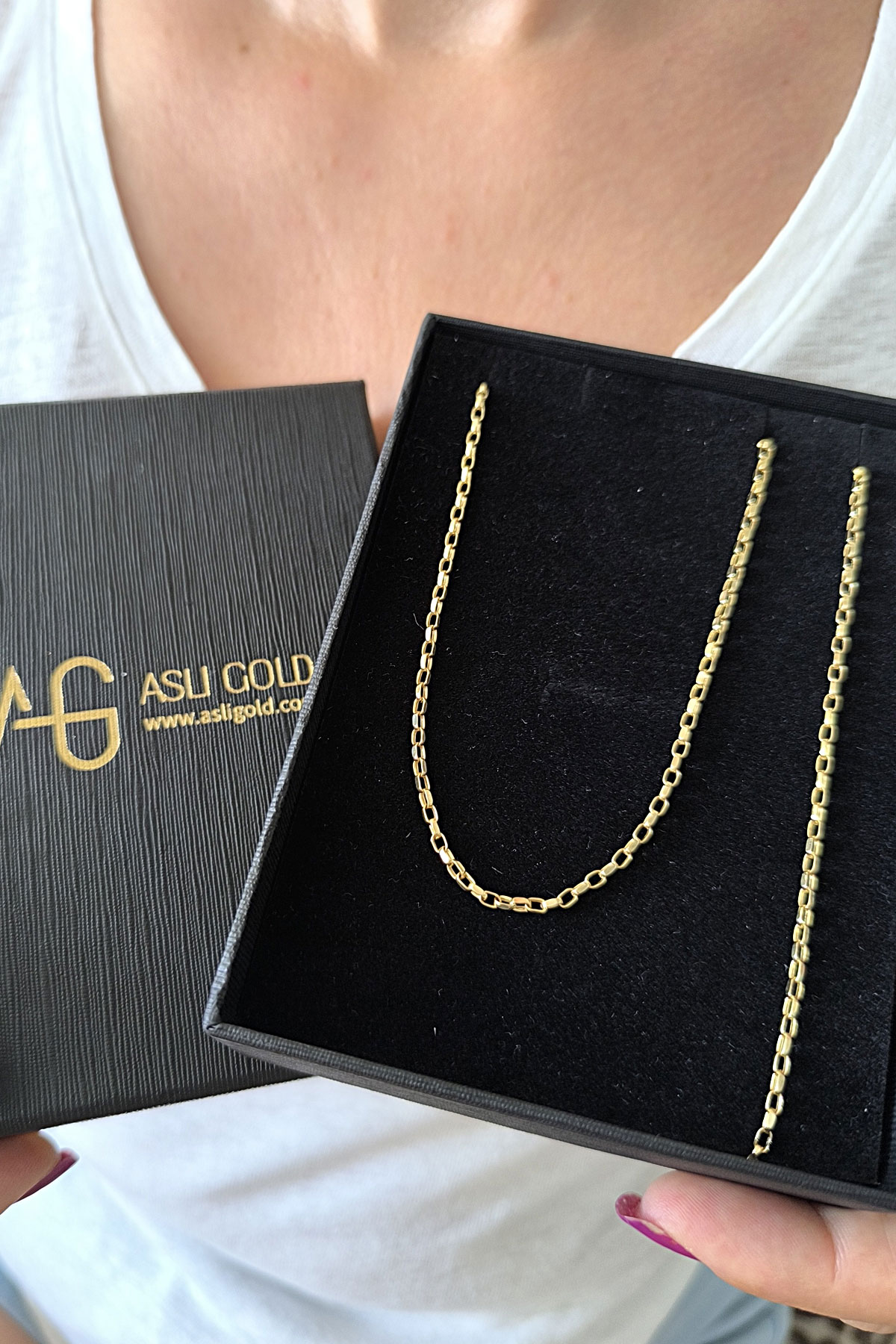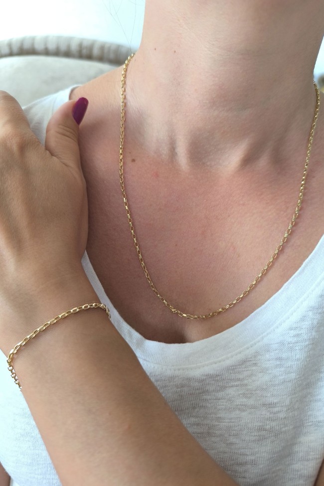 Spor Tarz 18 Cm Boyunda Bileklik 60 Cm Boyunda Kolyesi Olan 2 Mm Eninde Forse Model 4.70 Gr. Ağırlığında 14 Ayar Altın Unisex Bileklik Kolye Set.