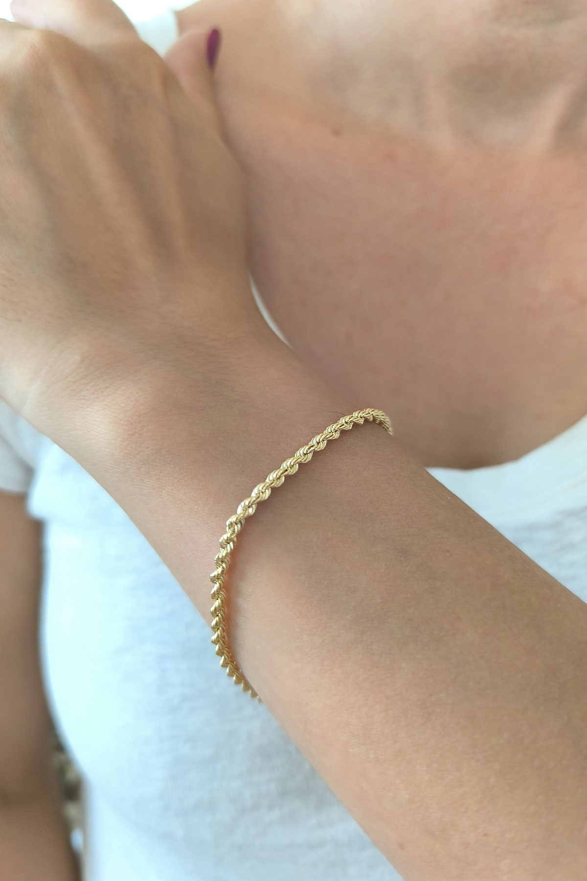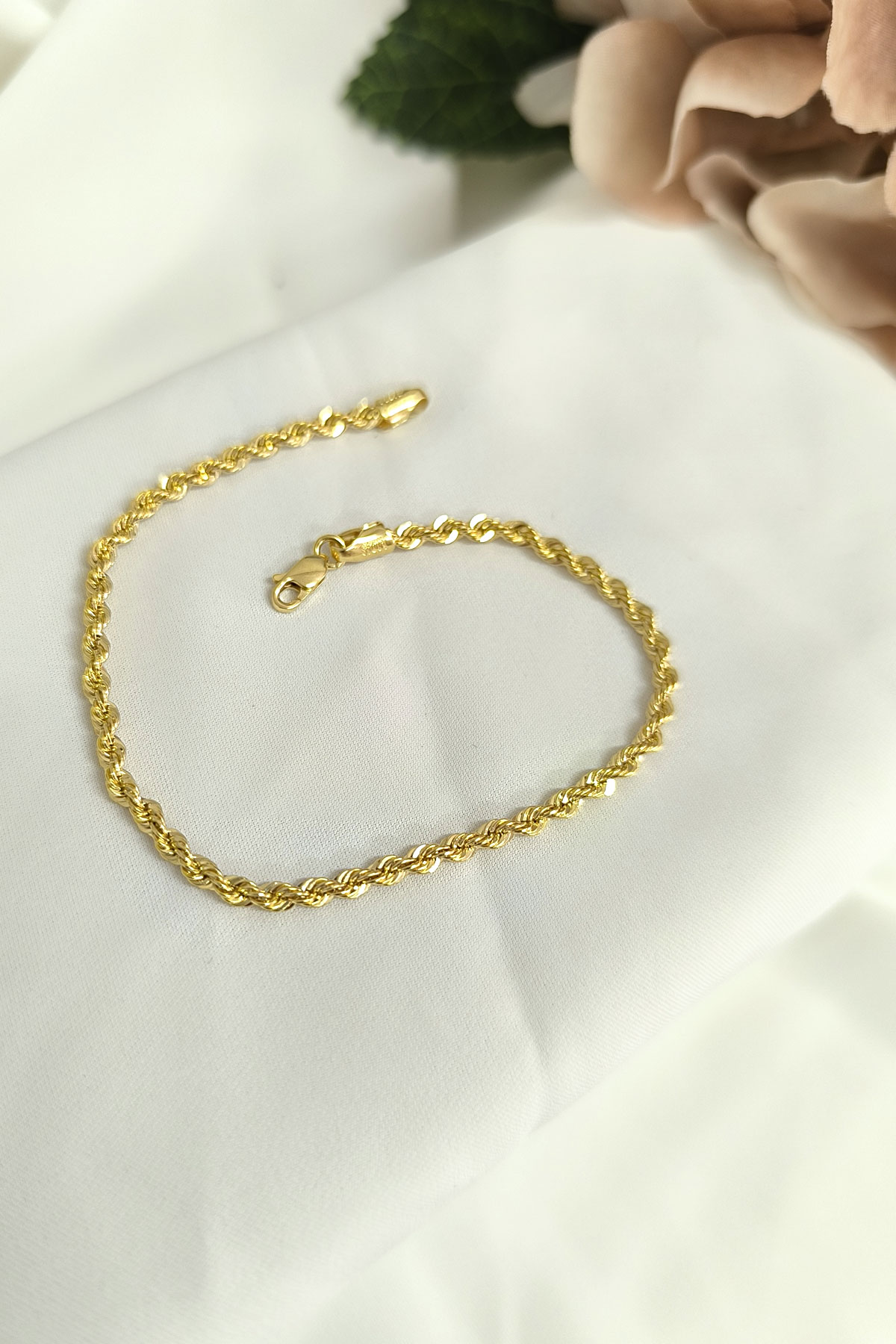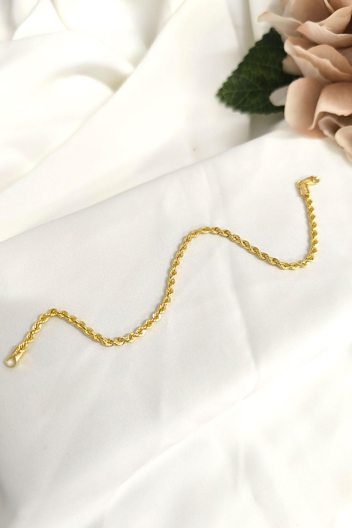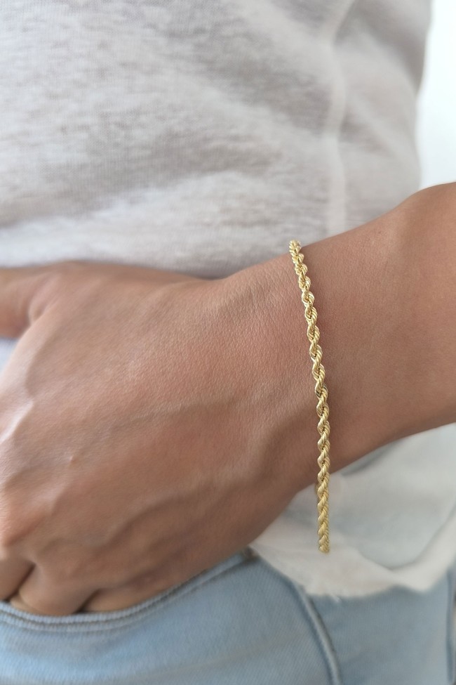 14 Ayar altın halat zincirli 19 cm boyunda 2.00 gram spor bileklik. Zincir modelleri de mevcut olan bilekliğimiz mavi köşeli boncuk hediyelidir, gündelik stilinize hava katacak yılların eskitemediği modeli severek kullanacaksınız.