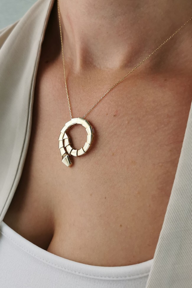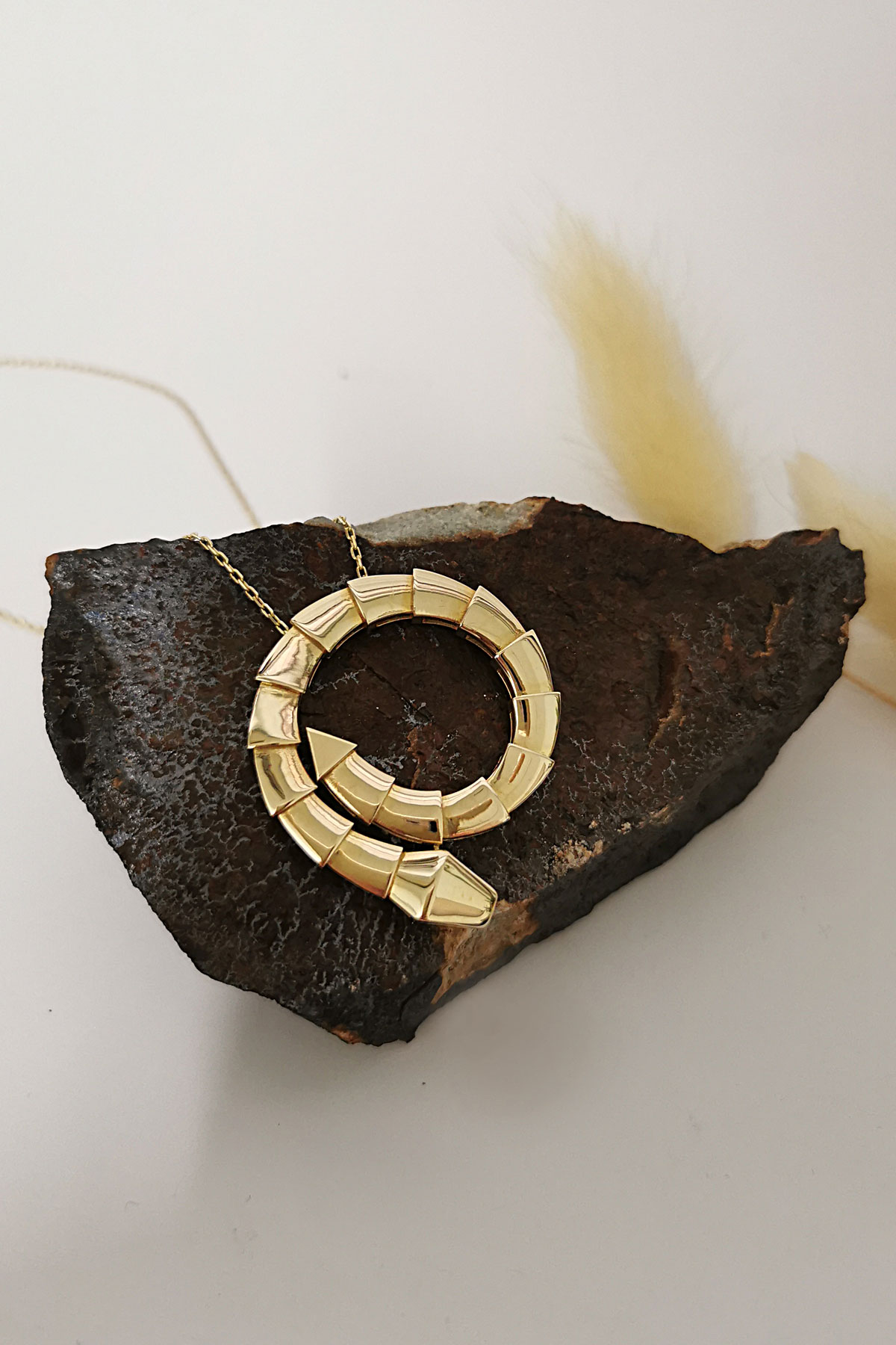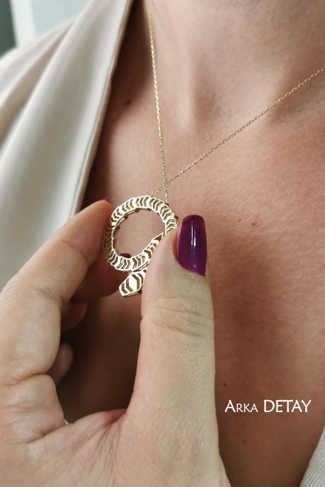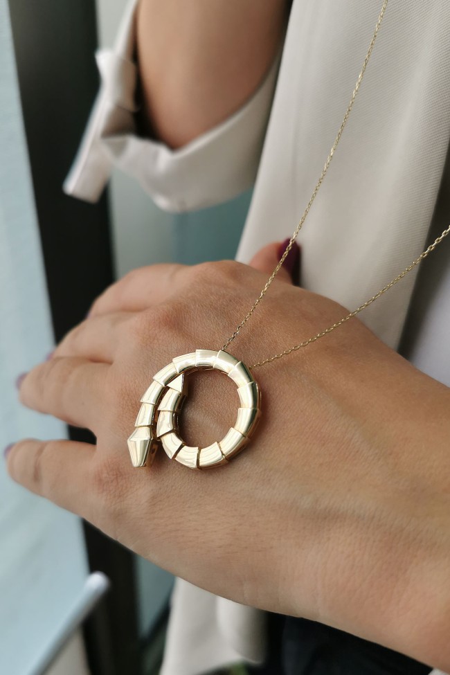 7.00 gram 14 ayar yılan model 3 cm boyutunda oldukça farklı ve şık tasarım altın kolye.