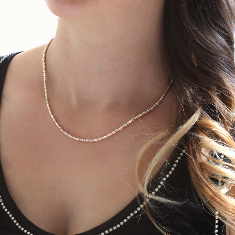 14 ayar 3 farklı renk kristal kalemlerle özel olarak işlemeler atılmış italyan toplarla tasarlanmış farklı kolye modellerinizle kombine olarak kullanabileceğiniz tek sıra top kolye.