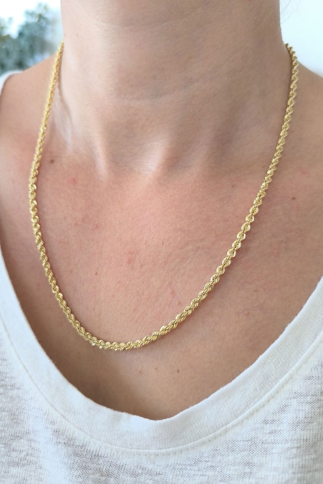 6.60 Gram ağırlığında 55 cm sezona yeniden damga vuran halat zincir modelimiz şık ve sağlam duruşu ile tüm kolye uçlarınızla uyum sağlayacak. 3.5 Mm kalınlığında günlük kullanımda severek tercih edeceksiniz, tek başına kombin olarak da kullanabilirsiniz.