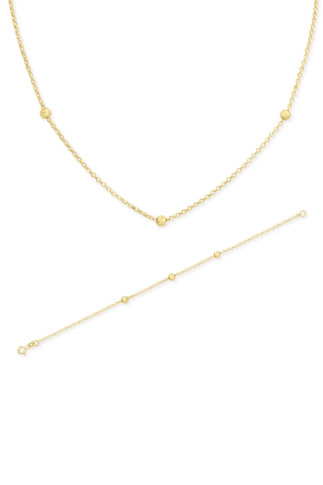 14 Ayar Altın 2.90 Gr. 45 Cm Dorika Toplu Sade Kolye Bileklik Takım.