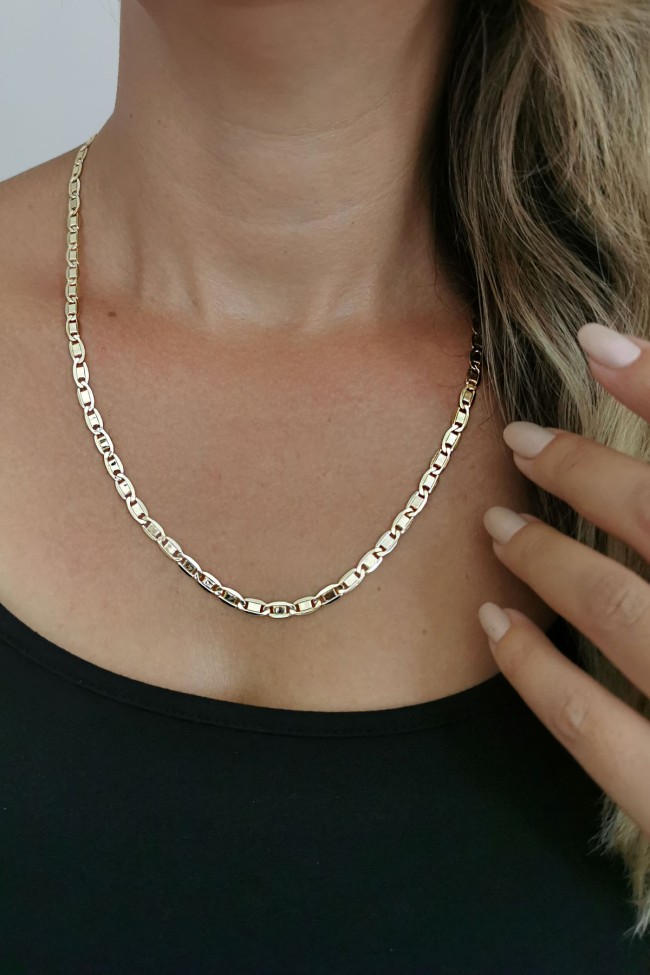 14 Ayar Altın Modern Tüm Gün Giyim Kombinlerinize Eşlik Edecek Ve Tarz Katacak Hem Kadın Hem Erkek Kullanımına Uygun Harika Bir Modele Sahip 9.40 Gr 55 Cm Boyunda 4.5 Mm Genişliğinde Altın Çubuklu Figaro Unisex Zincir Kolye..