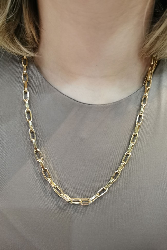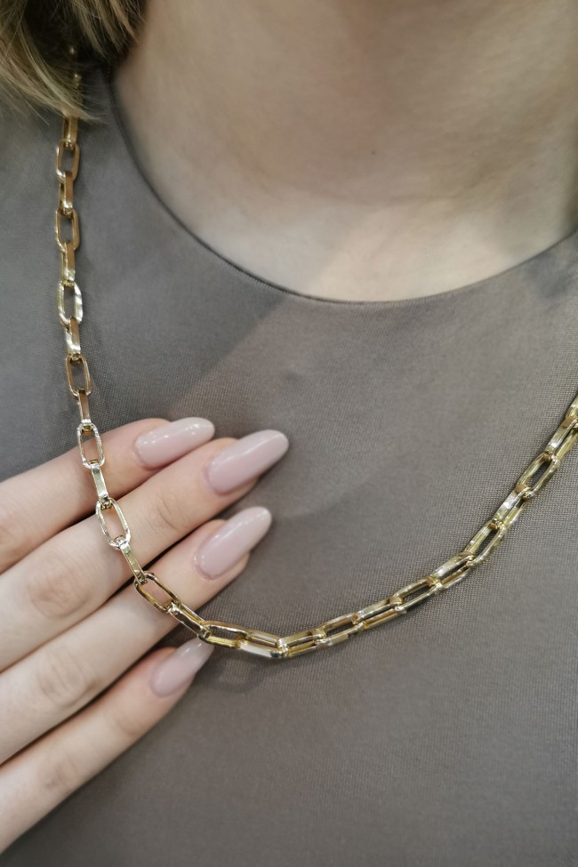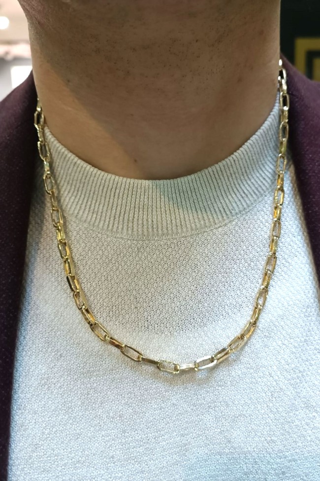 Spor Tasarım Sezonun Trendi 60 Cm Boyunda Işıl Işıl 13.00 Gr. Ağırlığında 05 Mm 14 Ayar Altın Köşeli Ataç Kolye..