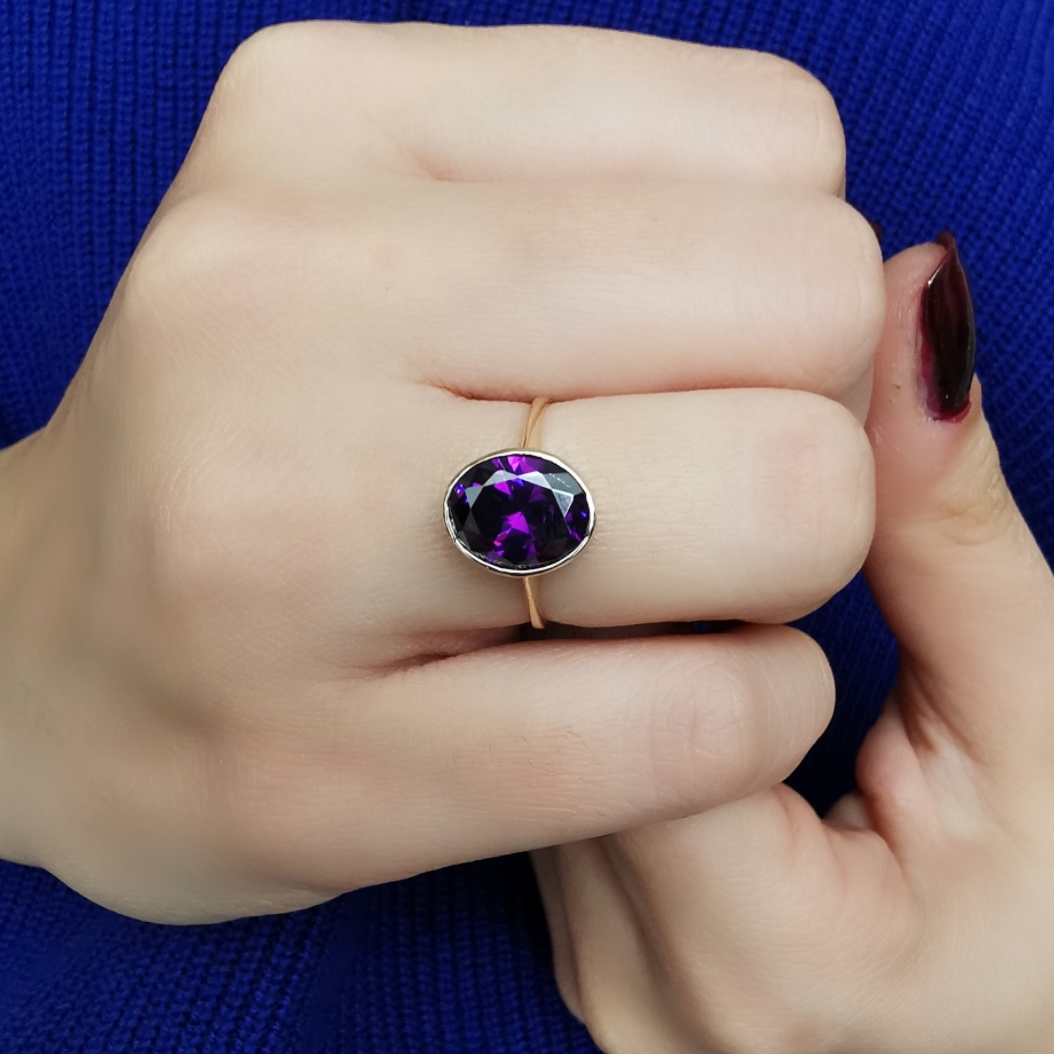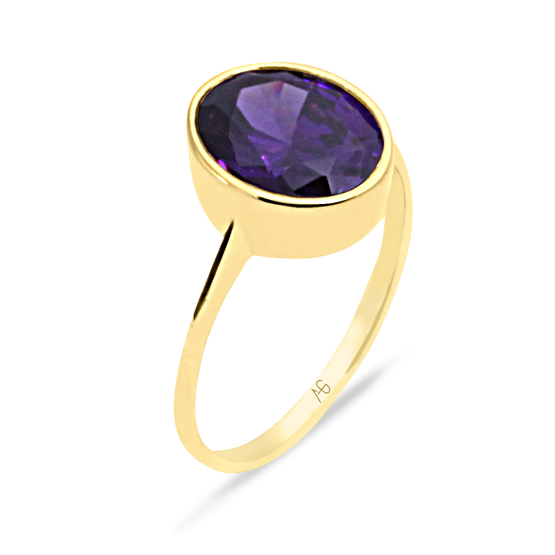2.70 Gram Ağırlığında Mor Taşlı Işıl Işıl İster Spor İster Fantazi Olarak Kullanabileceğiniz 14 Ayar Altın Oval Taşlı Yüzük.