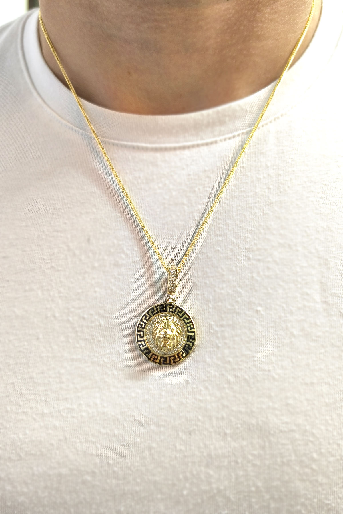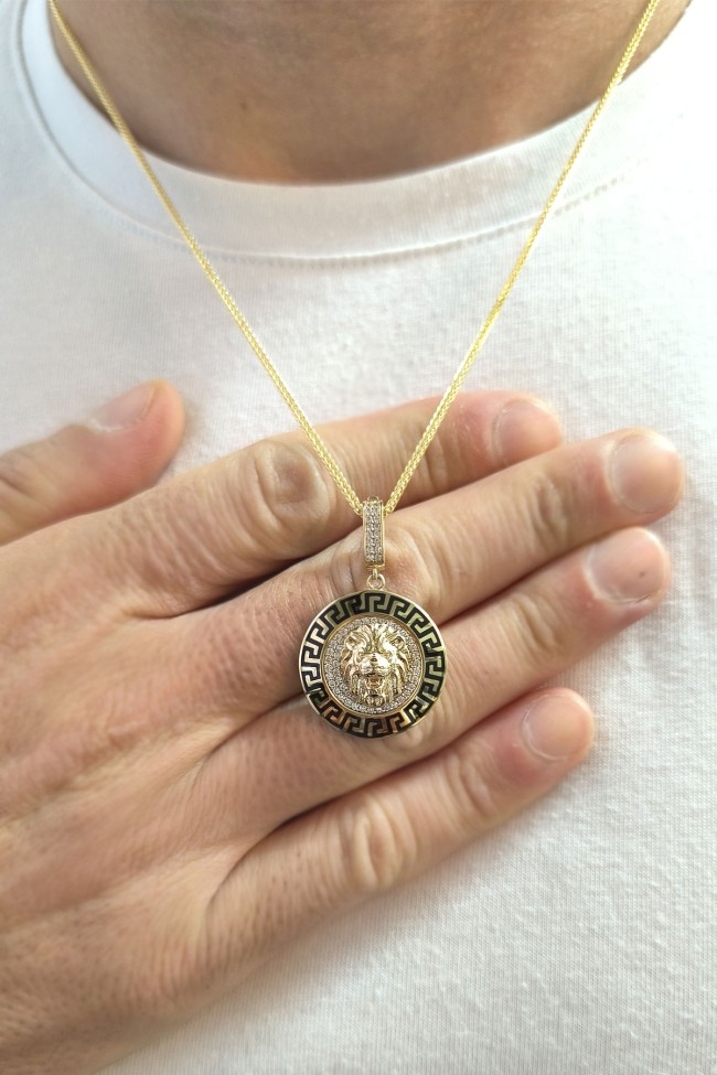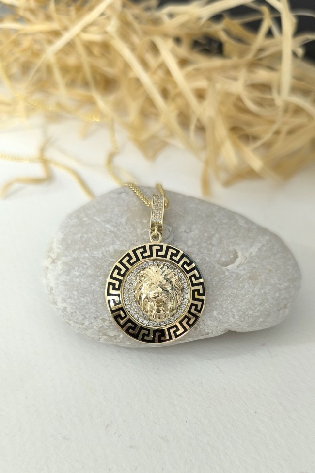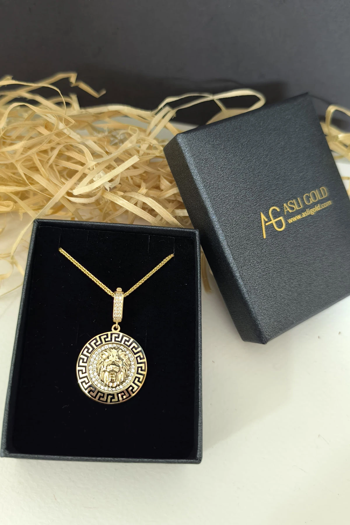 Modern Şehirli Tarz 55 Cm Boyunda Spiga Zinciri İle Oldukça Şık Bir Modele Sahip 9.70 Gr. Ağırlığında 14 Ayar Altın Taşlı Aslan Başı Erkek Kolye.