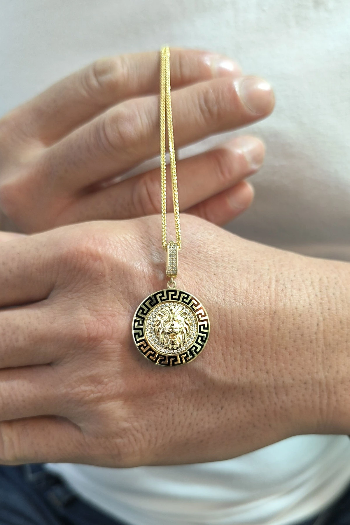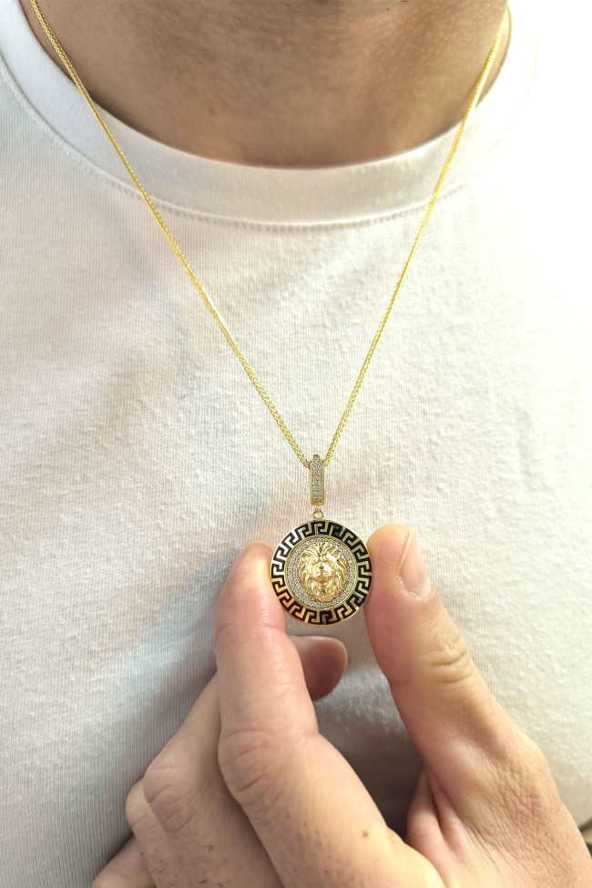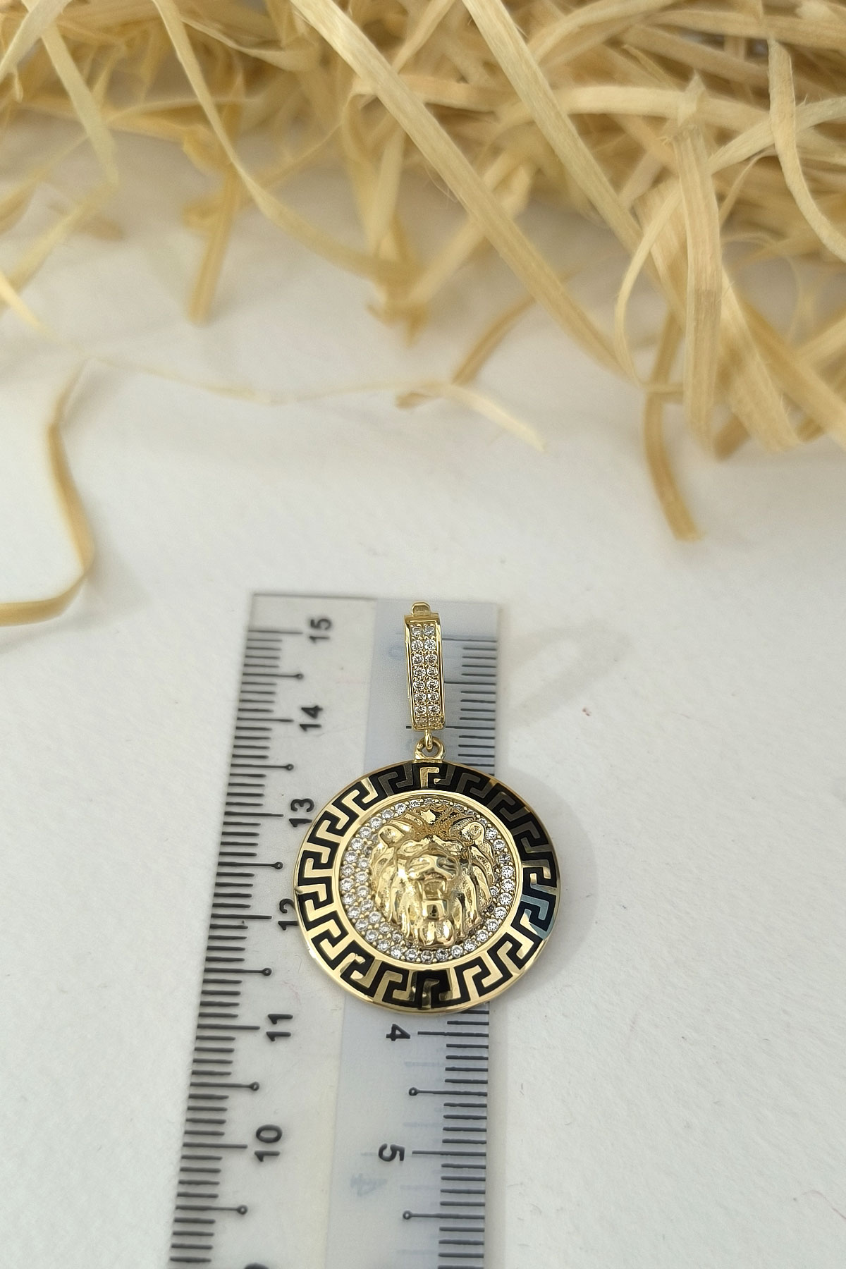 Modern Şehirli Tarz 55 Cm Boyunda Spiga Zinciri İle Oldukça Şık Bir Modele Sahip 9.70 Gr. Ağırlığında 14 Ayar Altın Taşlı Aslan Başı Erkek Kolye.